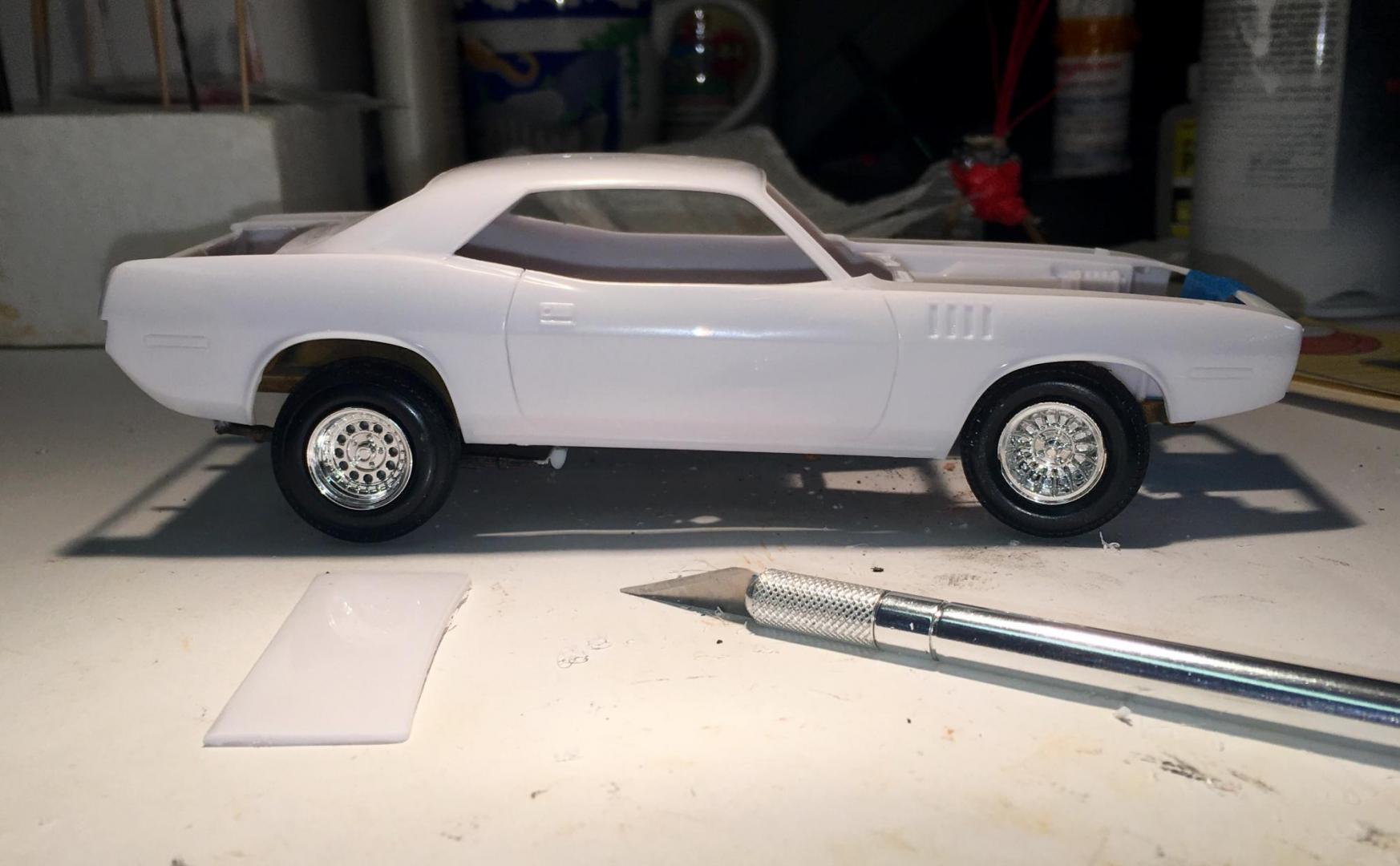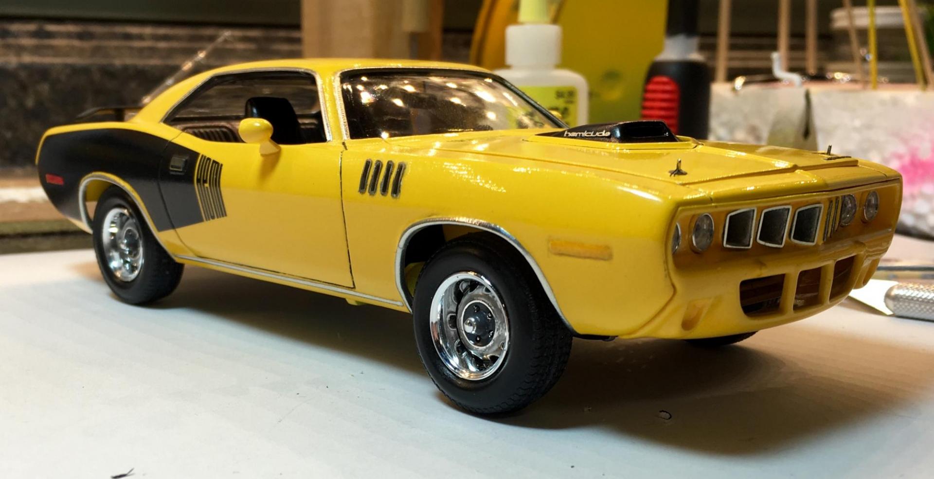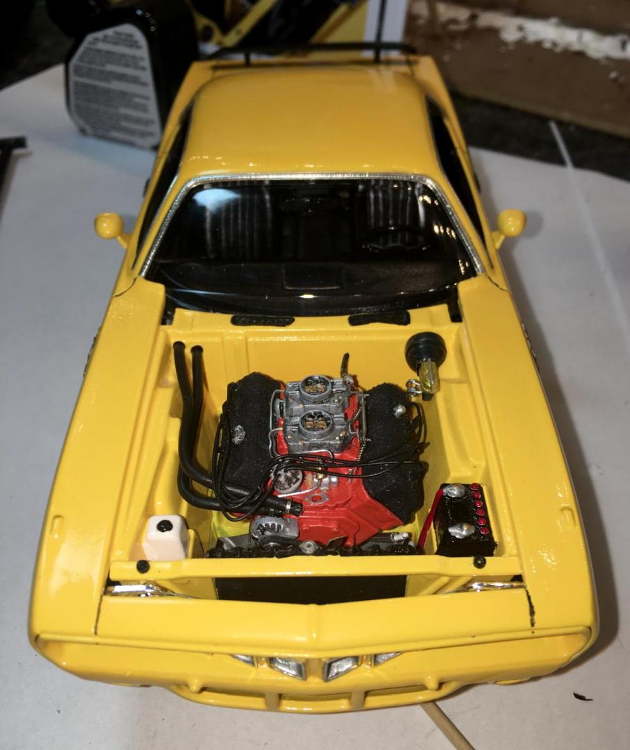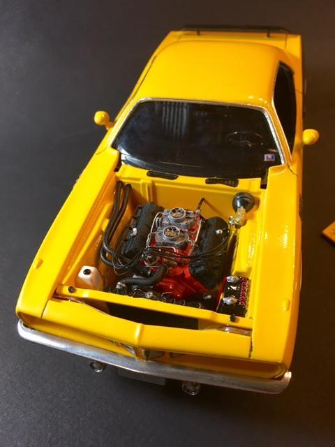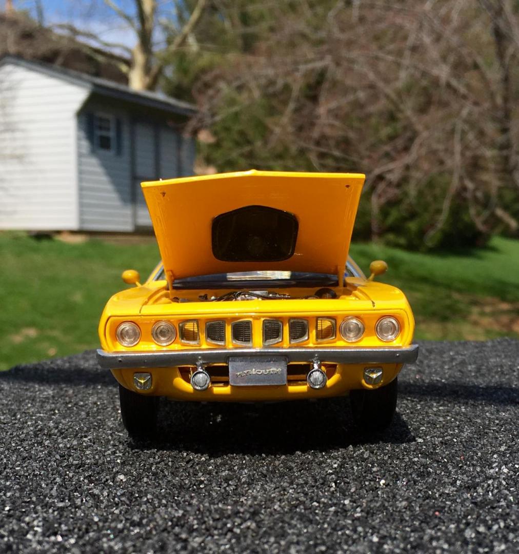 Need a sunny day to get a few outside pictures, but here are a few indoor pics of my Revell '71 Hemi 'Cuda. Paint: Model Master enamels, acrylics, rattle can lacquer (for the body), and Alclad chrome. Zaino polish to finish '70's era shine. PE pieces used throughout.