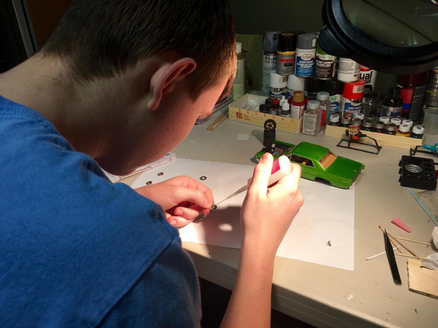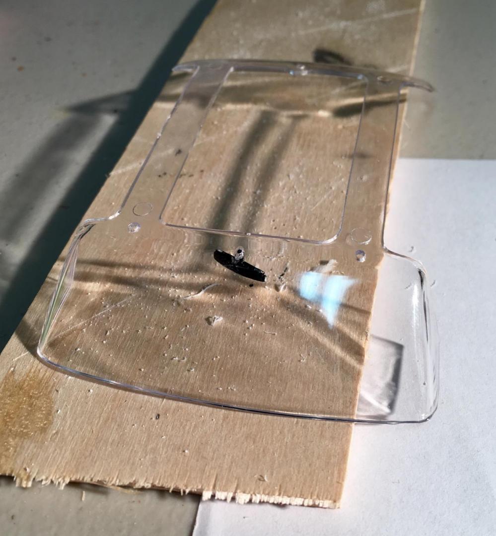 He's back on this build finally. After failing to get a hold of anything he/we could make work as a windshield, I ended up getting him a complete kit. He happily set aside the nightmare '67 he's been working with(against) to get the '64 under glass. Finishing up some hood detailing: