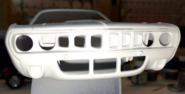 Turned my attention to the body now. Removed a few sections of the grill to make way for a touch more realism: We had a slight temperature rise, so after every thing was sanded down good I laid on a few coats of color: Some light wet sanding and a few final coats to call it done at this point in time: