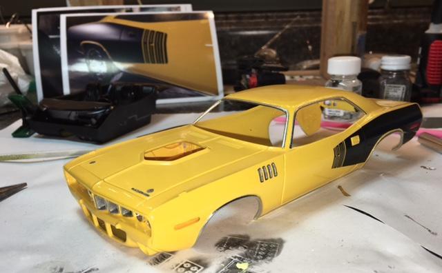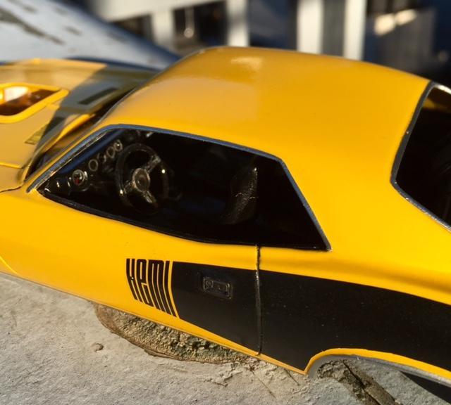 Need a sunny day to get a few outside pictures, but here are a few indoor pics of my Revell '71 Hemi 'Cuda. Paint: Model Master enamels, acrylics, rattle can lacquer (for the body), and Alclad chrome. Zaino polish to finish '70's era shine. PE pieces used throughout.