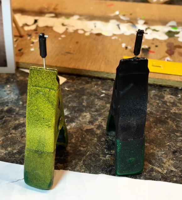 The only reason those were left on the "spruce" was because they aren't going to be used for anything other than trial/error. I typically will drill holes as well, but use toothpicks to hold the pieces that are getting painted. Pieces that can't be drilled either get a piece of tacky clay or Elmer's (white) glue applied with a toothpick or skewer. I don't know..................this stuff can be pretty hard to cut through sometimes. -