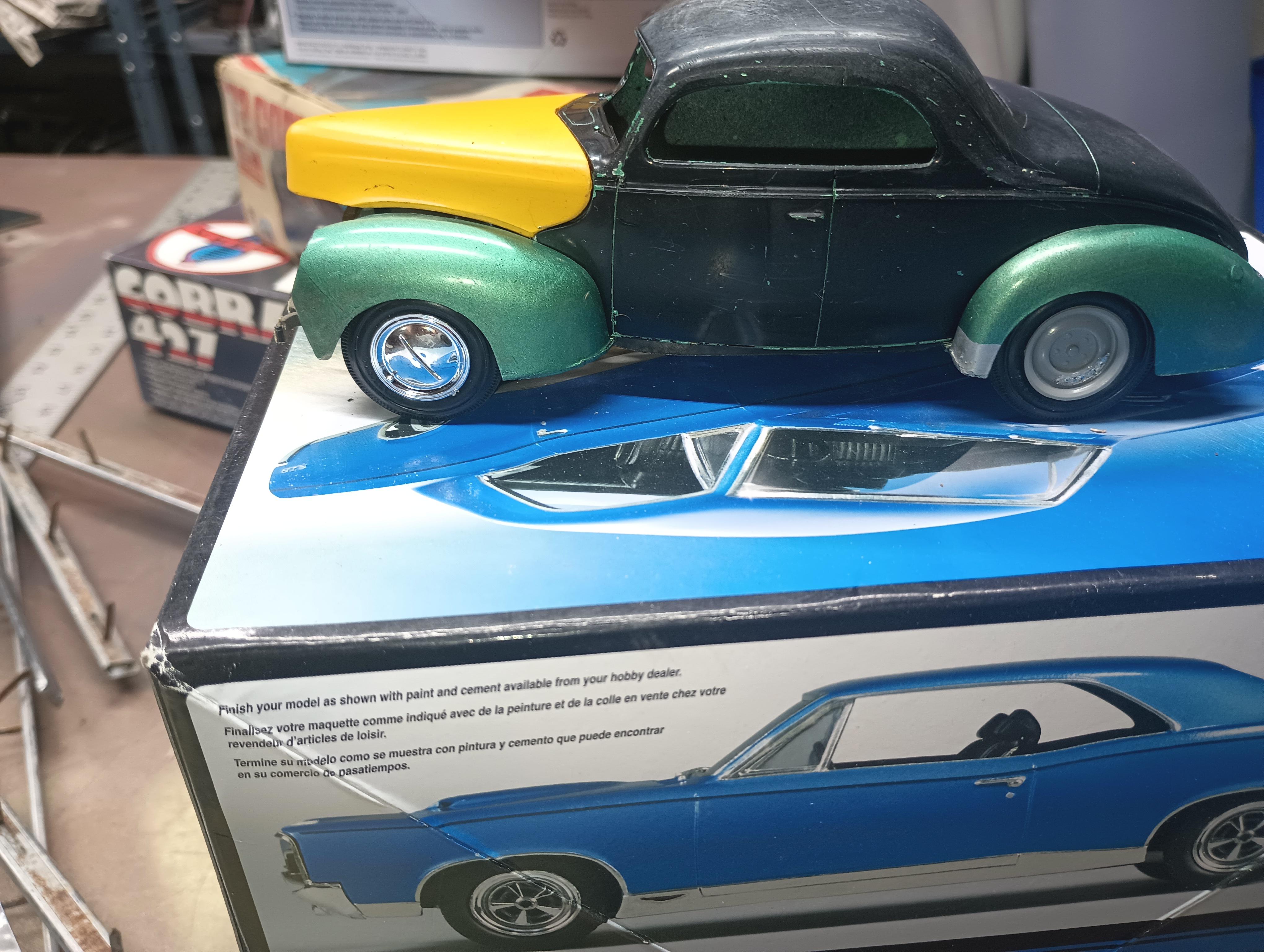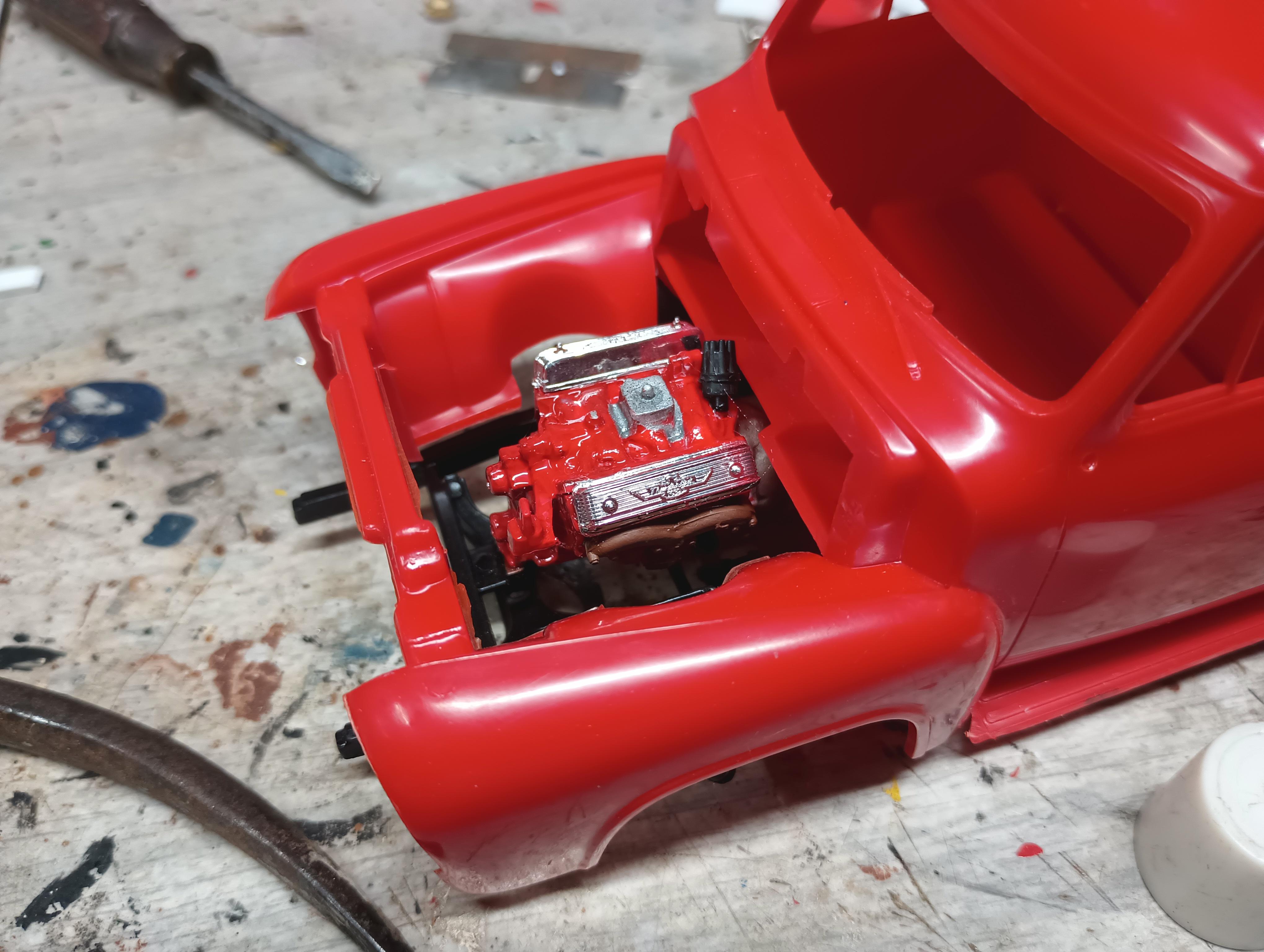 Next one will be more accurate,this one was assembled with parts I had. Will do some research on a body that has more appropriate rear wheel openings and frame,looking like it will take a few kits to get this done. I think this one is a Revell and the only one I have seen with a normal opening hood.