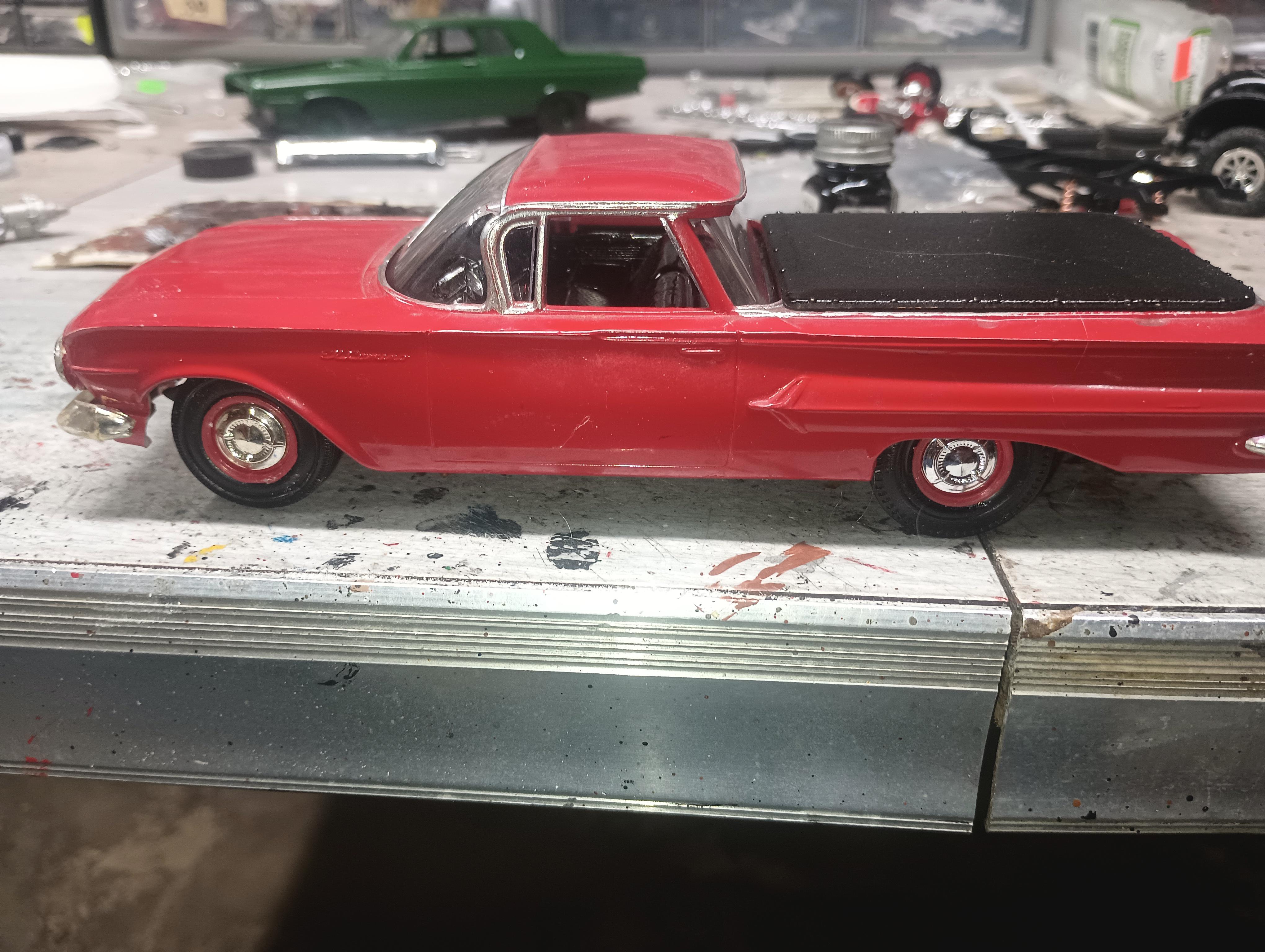 I picked it up without a chassis and interior a couple years ago,I was going to replace the missing parts with 59 parts but found a 60 for parts. I got the 60 chassis and interior ready to go in but noticed the wheelbase was not correct so the 59 chassis went on,seen one on eBay and the wheelbase was off so it came that way. The paint is the way it came but added a little detail.