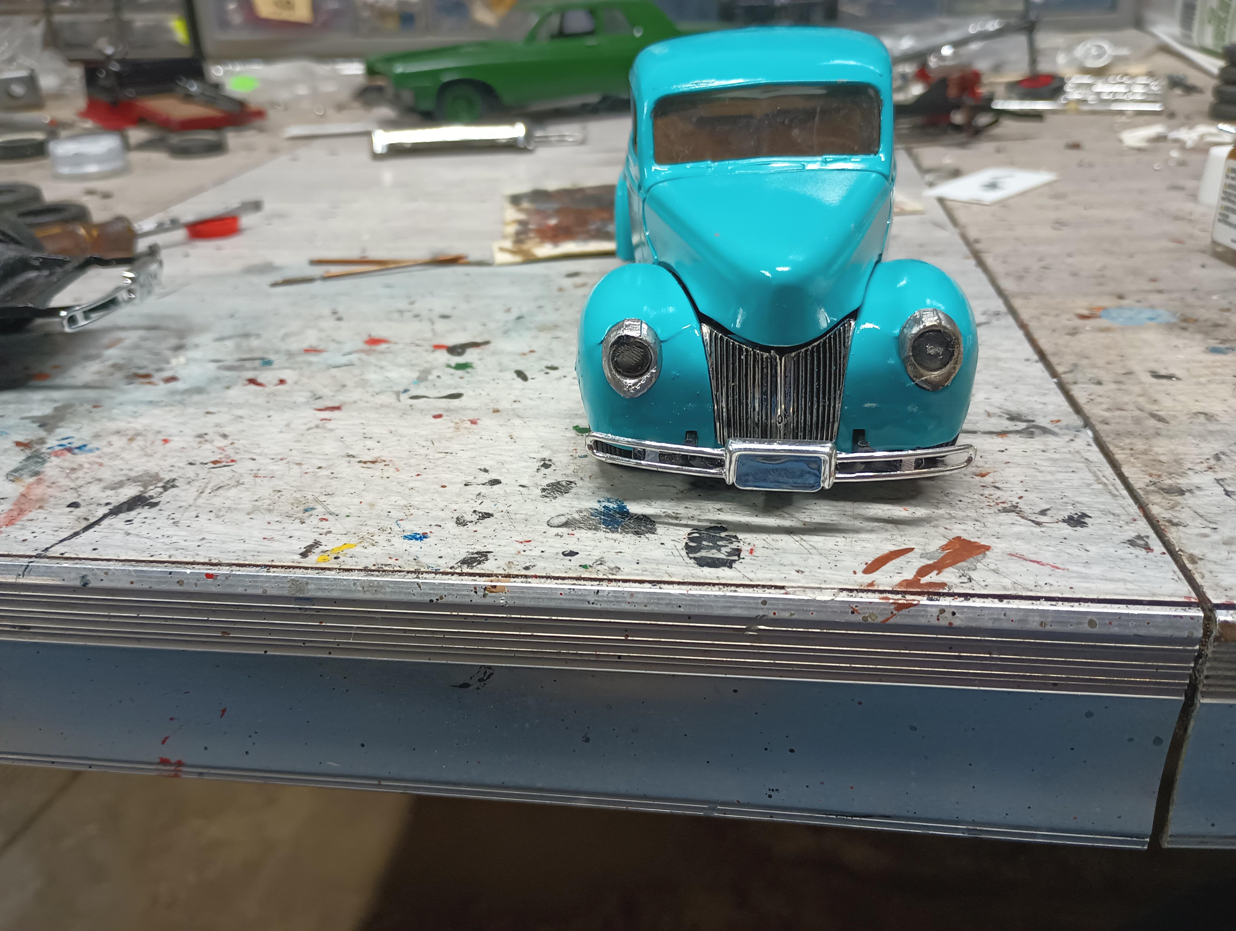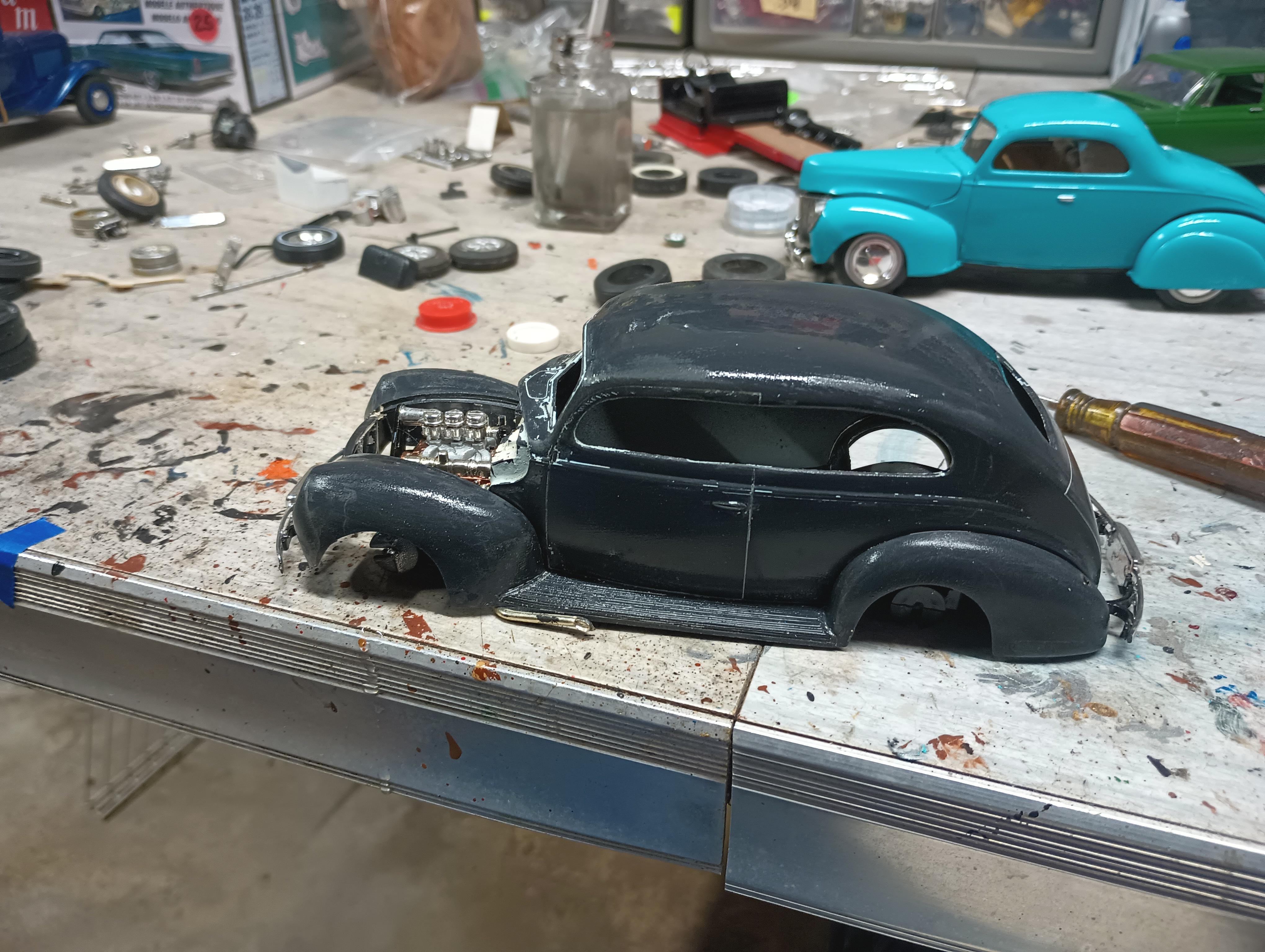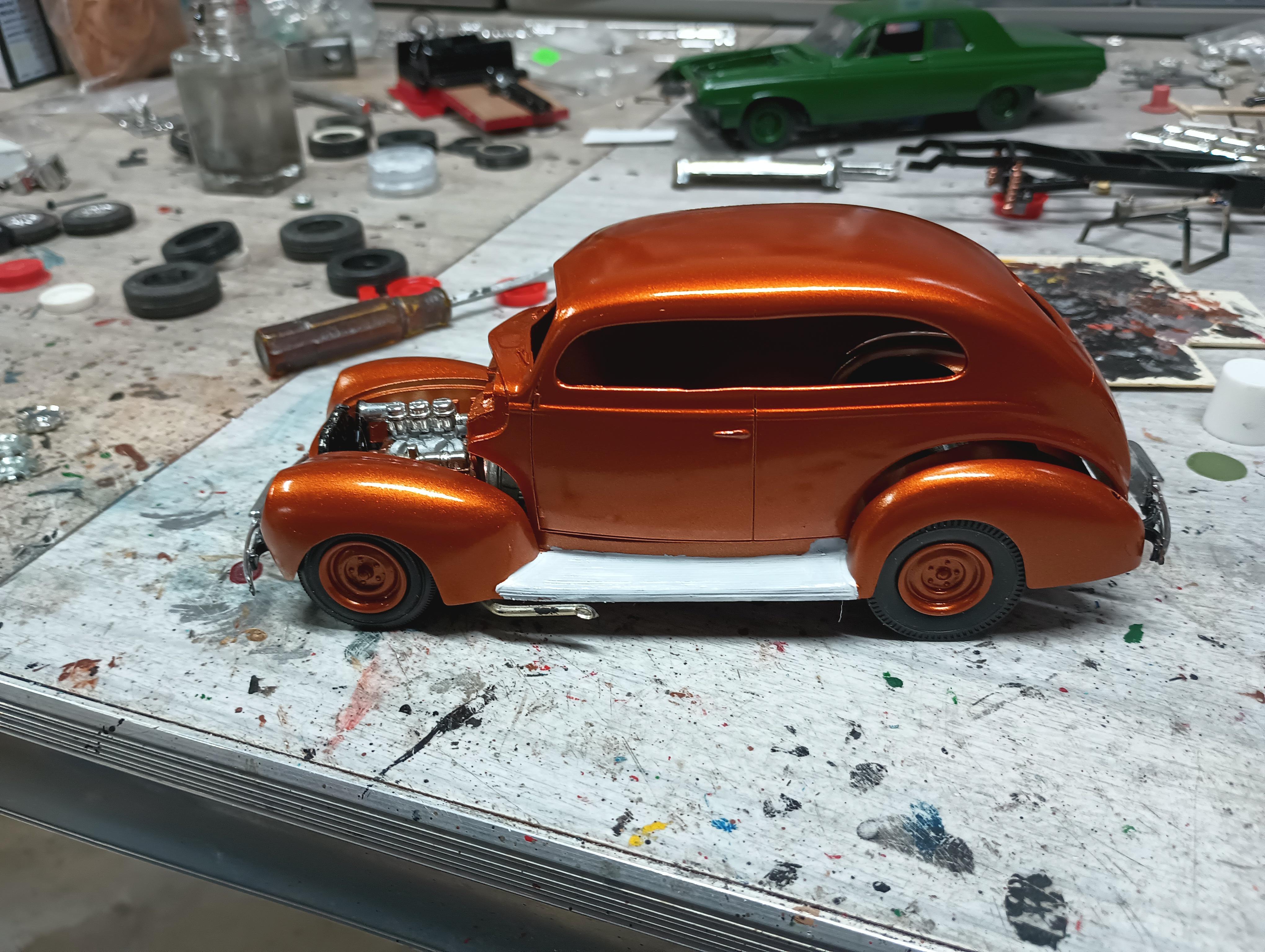 Almost threw it out along with the hard top coupe but after I decided to do something with the coupe I am also going to build the sedan,it's going to need a bunch of parts to complete so it will be some time to get back to it. This one will also be a mild custom with skirts and it will get running boards so another set of fenders is needed.