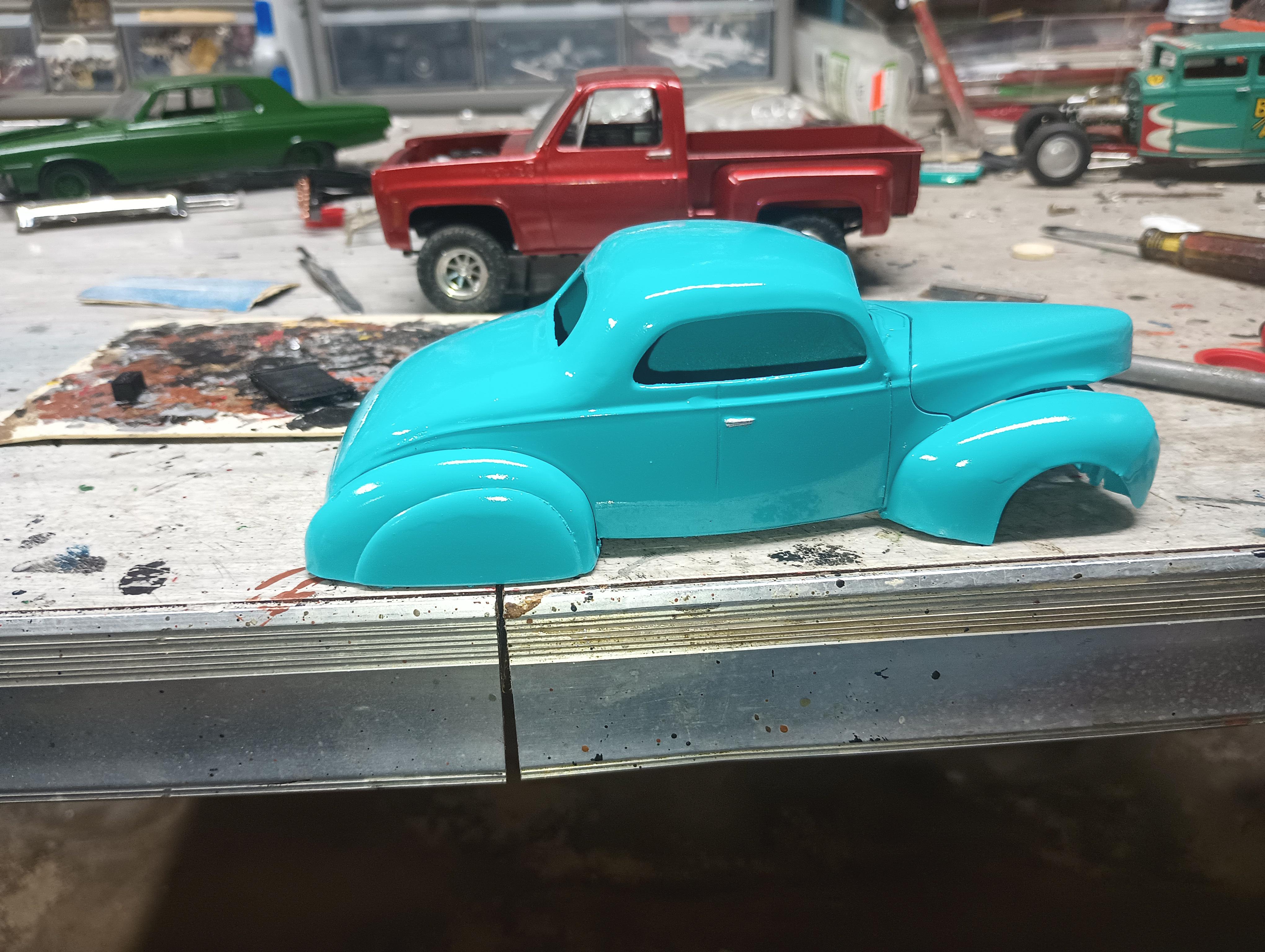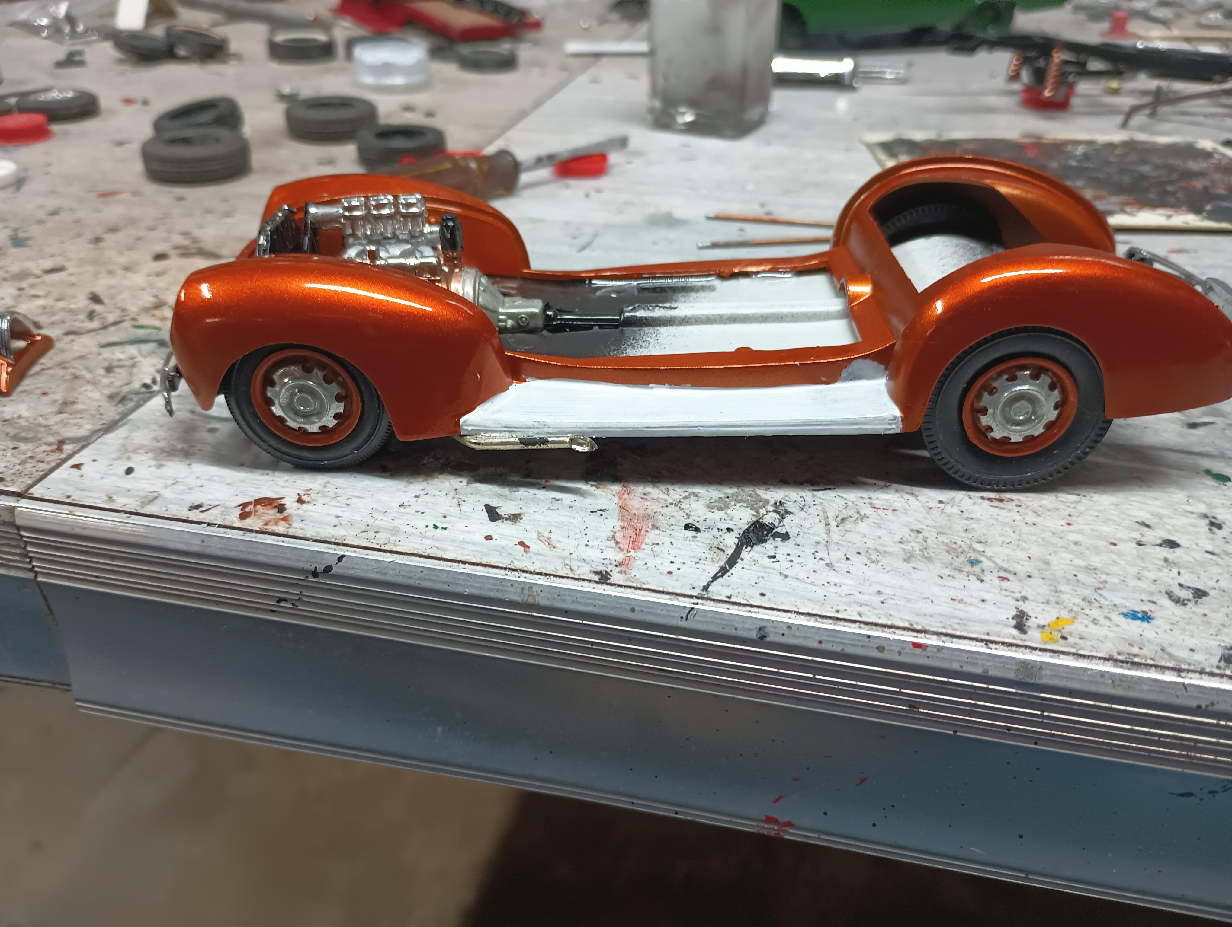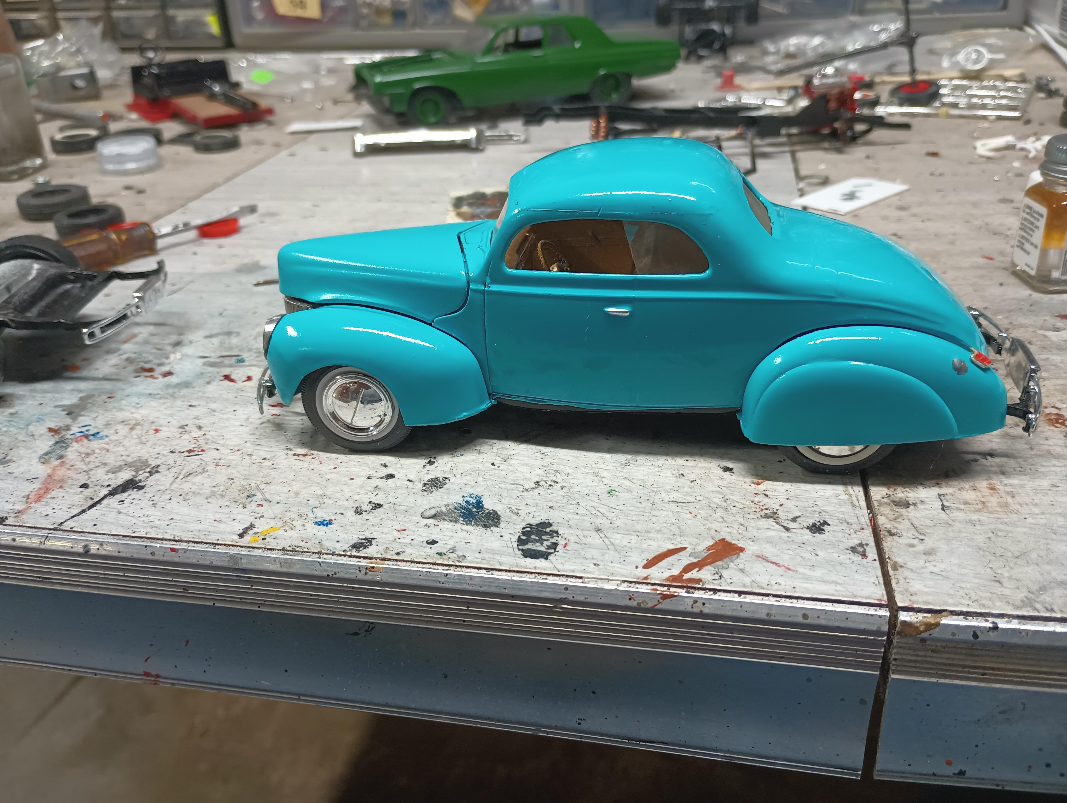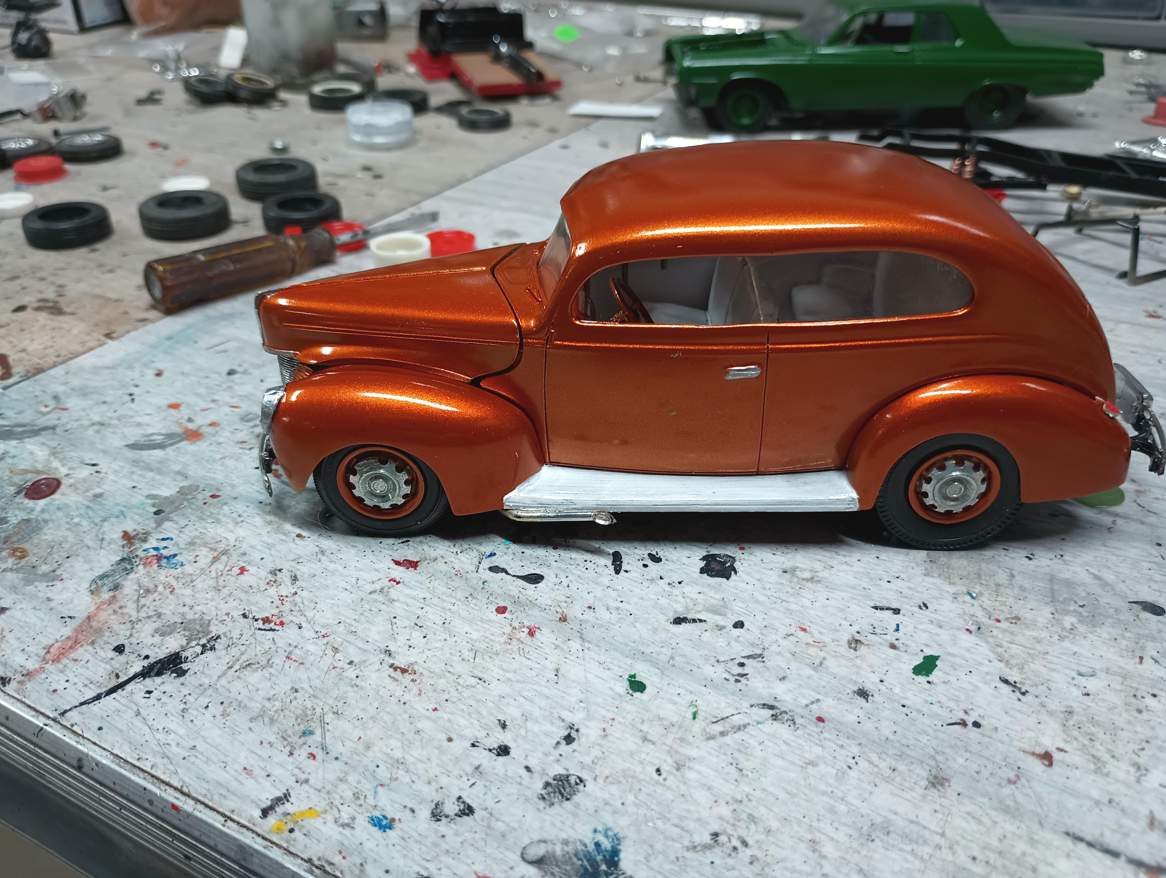 Almost threw it out along with the hard top coupe but after I decided to do something with the coupe I am also going to build the sedan,it's going to need a bunch of parts to complete so it will be some time to get back to it. This one will also be a mild custom with skirts and it will get running boards so another set of fenders is needed.