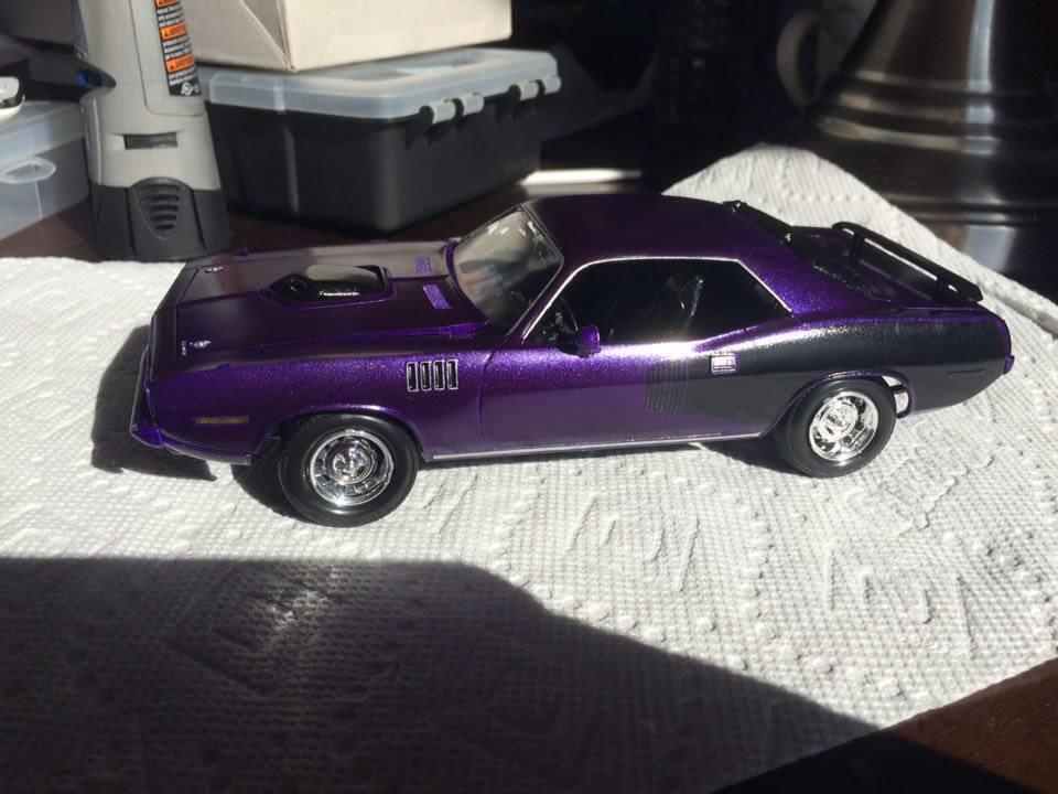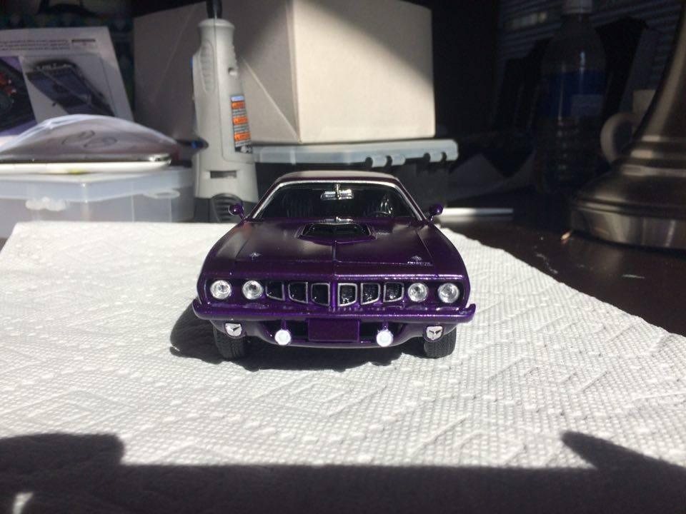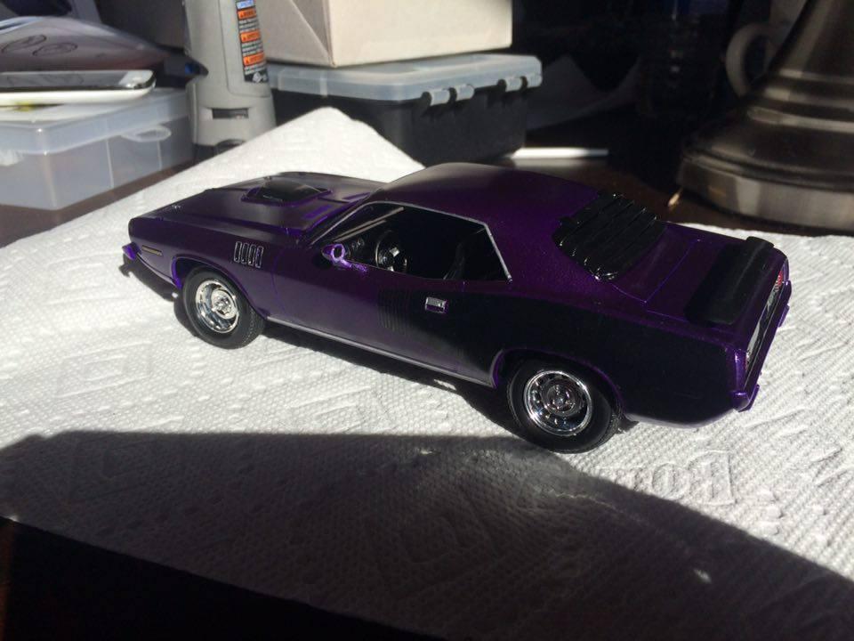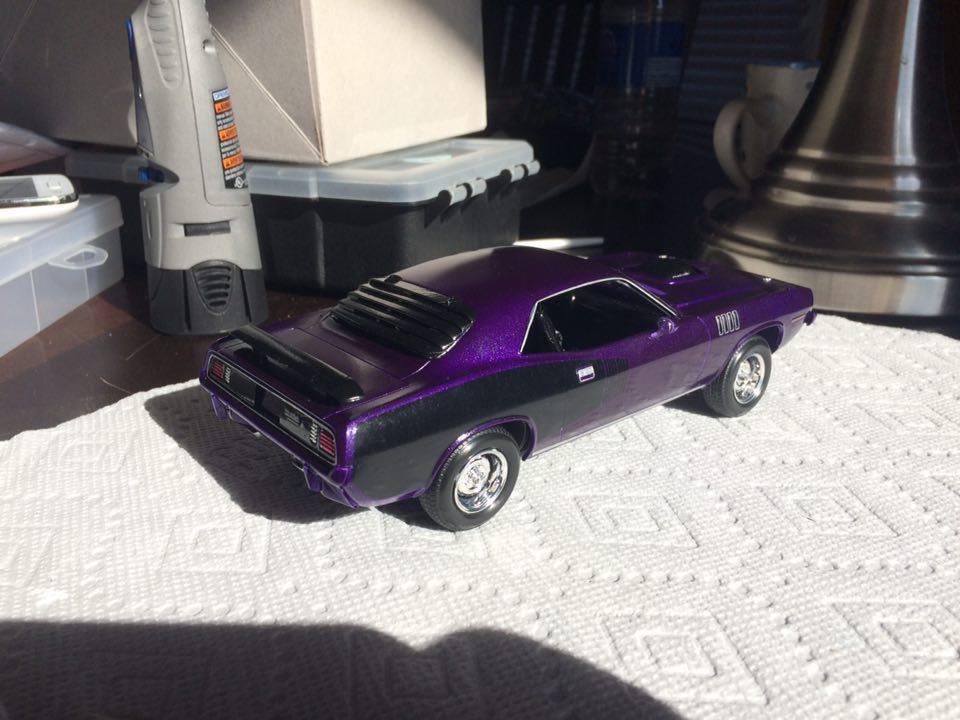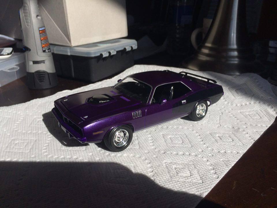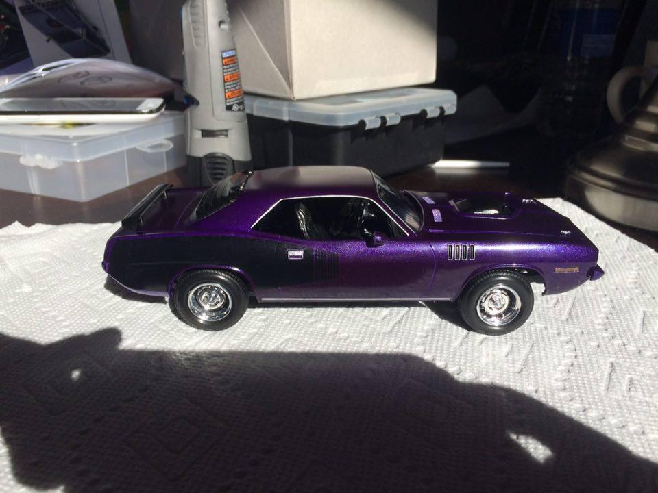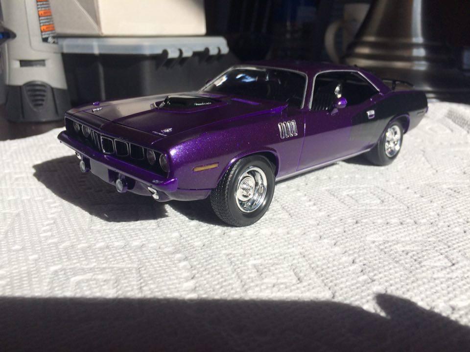My girlfriend and I just finished our latest project together, this time we decided to do a Hemi Cuda in plum crazy. We're pretty pleased with this one other than the fit and finish of the kit itself in places but it happens. A big thank you to the site for providing techniques on how to strip the chrome off the bumpers. Much happier with them in body colour. Now on to the next one!