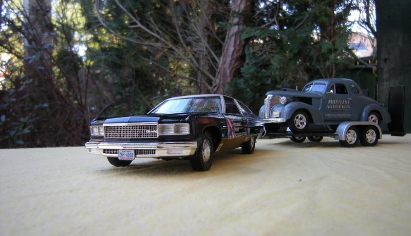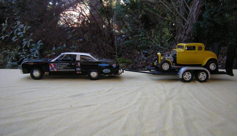 The kit is the 1st edition, accordingly he also has the NSRA Decals, has what probably missing the license for the new edition. In the model are not many parts, according to quickly lets it build. The trailer is of GMP, the 39er Chevy I had built a long time ago.