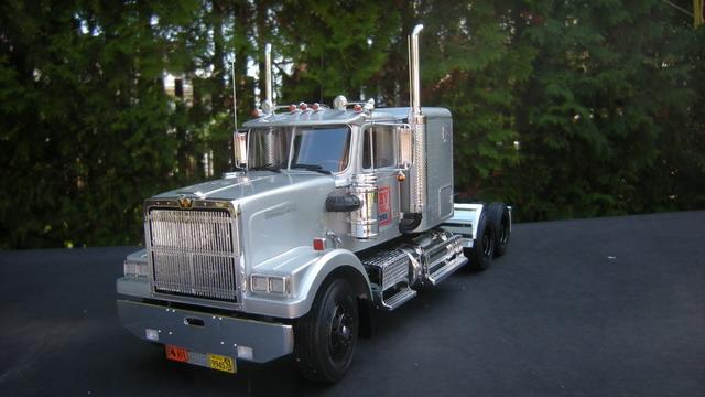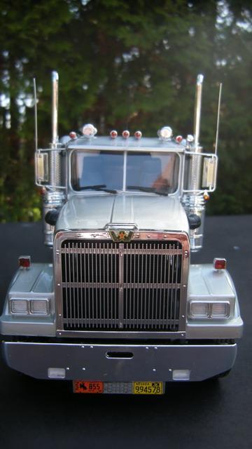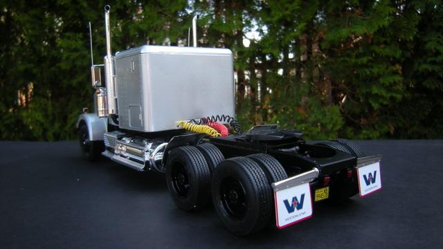 The truck has been given a set of rubber tires, in the kit were the 2-piece hard plastic tires, terrible. A few supply lines, other Mudflaps and a few antennas and already sees the truck from something real. The trailer is built OOB.