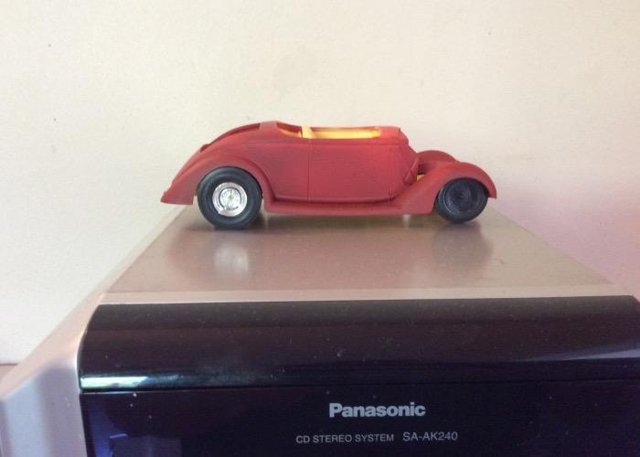 3. I was mucking around with it today, the primer was well . . .sticky, and it has sat for 4 years after getting it as you see it above, pulled out some 240grit and rubbed it off. i need to open up the wheel arches a bit more as when I originally did them the only slicks I had were some Goodyear Eagles off a NASCAR parts kit I had, I found some period(or just after) correct Firestone skinnies. Pic of white wheel is the Firestone, I will put steel wheels front and rear, keeping it simple, I would wire the motor, but wonder whether it would look to modern with the way they look. Engine will be factory colour, with a smoke wash. Thinking grey primer over red oxide as they would have had a bit available post WWII