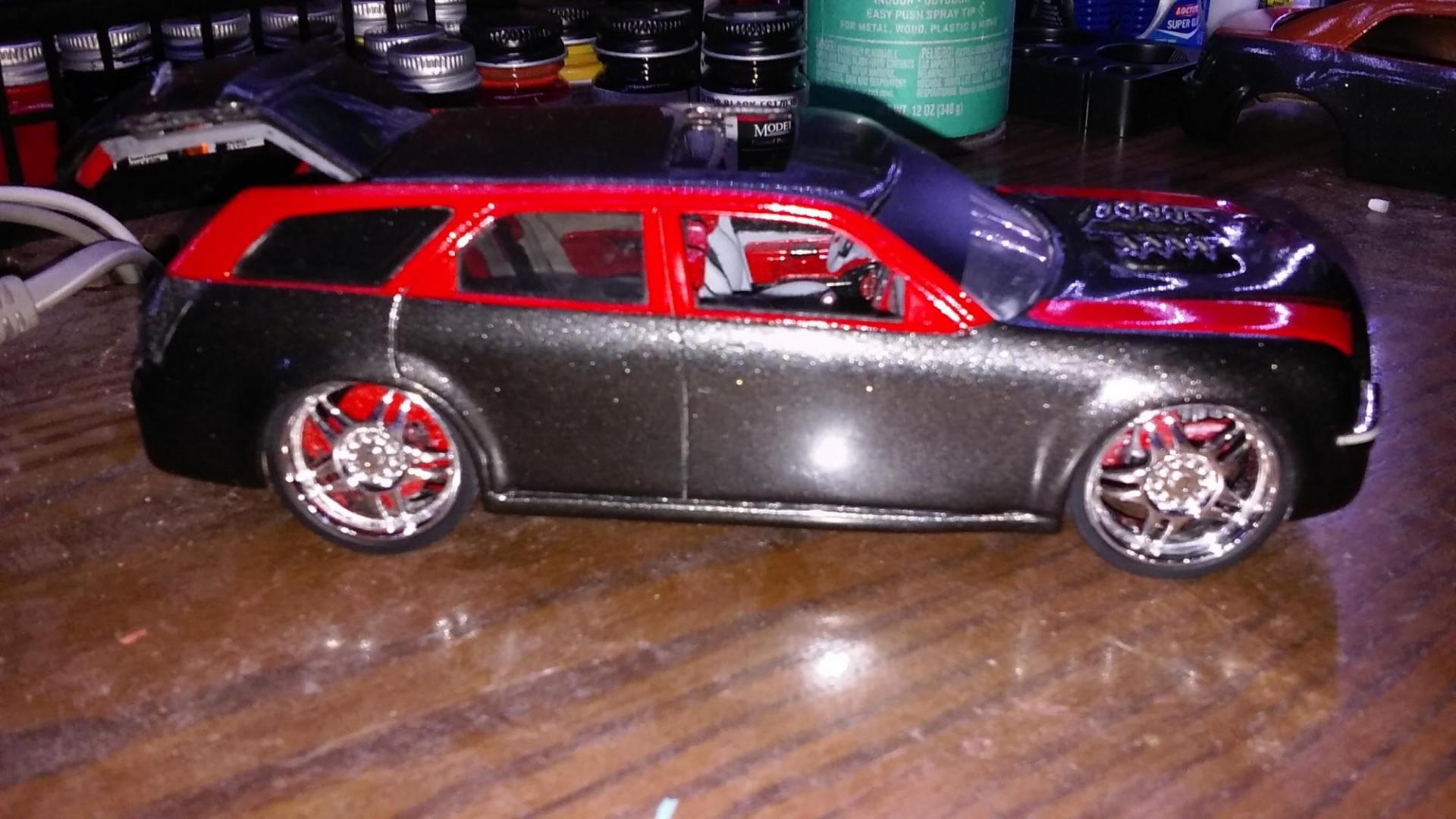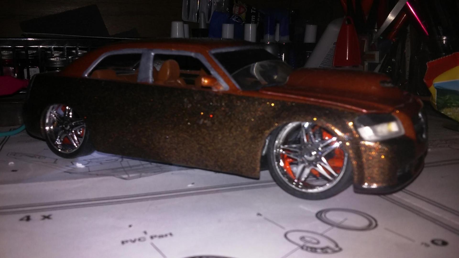 This one started out being a lowrider car with all the different color lines and designs but didnt like the way it turned out. So I stripped it down and redid the color scheme.and I also switched out the wheels. They came from a chrysler 300c Let me know what you guys think.