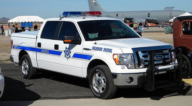 Well, actually, Clayton, there are 'tells:' The DPS Highway Patrol Roadside Assistance trucks are 1-ton rigs with service bodies. They are operated by civilian, non-enforcement employees. Besides being marked as Roadside Service Patrol (see service body), they have under-sized stars on the doors in the stripe-break. Obviously small stars. And they have heavy-duty push bumpers. The patrol/enforcement trucks have the conventional Highway Patrol markings, most prominently the full-sized stars on the doors. Most of them have standard pickup beds, all have bed covers. Some of them assigned to motor carrier enforcement have the service bodies but with conventional markings. -