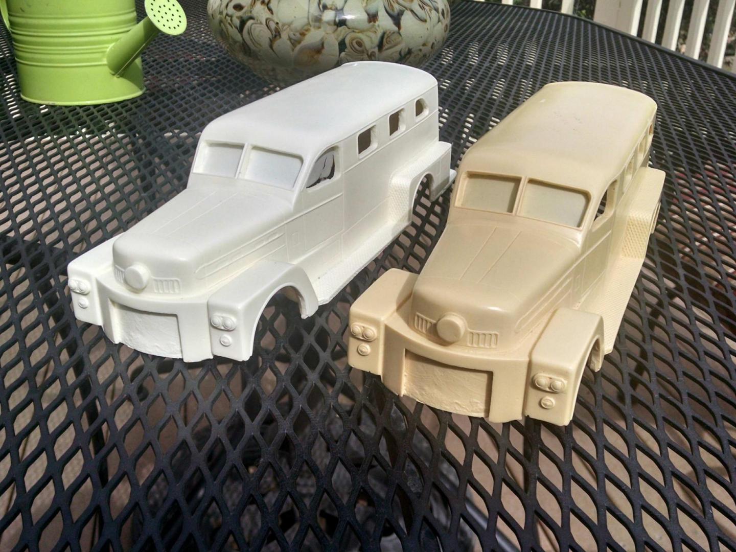 6. Here is a pair I just recently acquired - from the bottom shelf of a hobby store in Denver. They didn't know what they had. I won't tell you what I paid for the pair - - it's nearly immoral. One . . . just ONE . . . has been my "holy grail" for the better part of 34 years. I was lucky to score one of the original fibreglass shells about 14-15 years ago, but since it was one of only a dozen or so, I've never been able to bring myself to cut into it. Now that I've scored the pair of detailed resins, I will leave the fiberglass shell in its virginal condition. I suspect the amber resin may be the first generation of bodies marketed by Uptown Hobbies in New York, and I believe the white resin version may be the second generation. Both were late 80's/early 90's while the fiberglass shell was very late 70's/very early 80's.