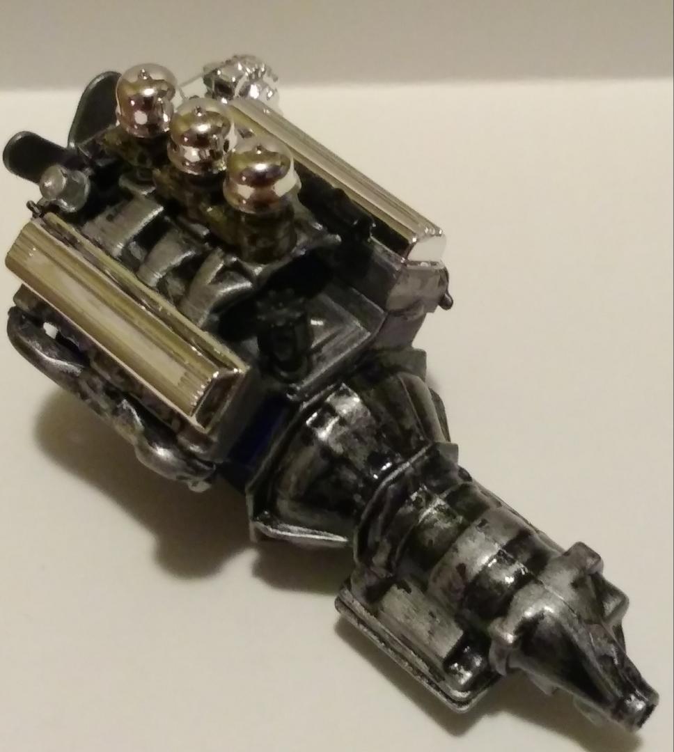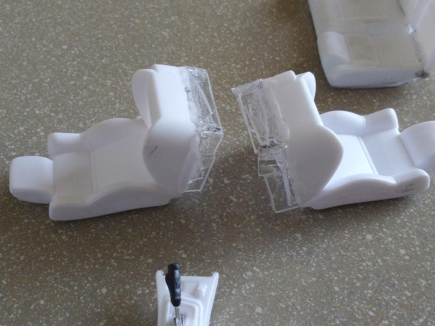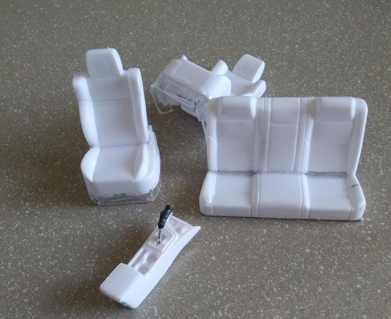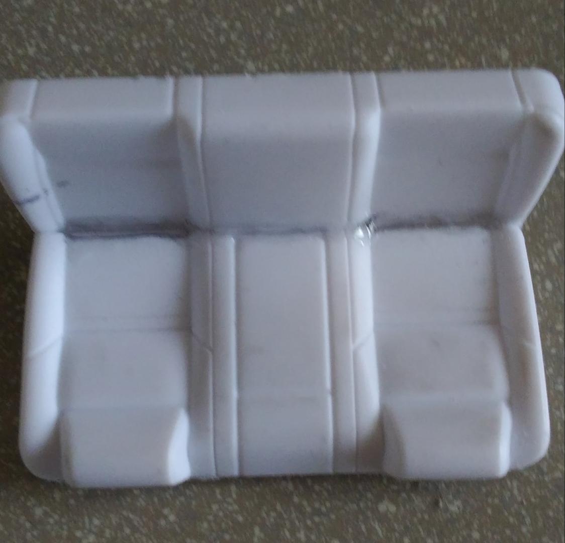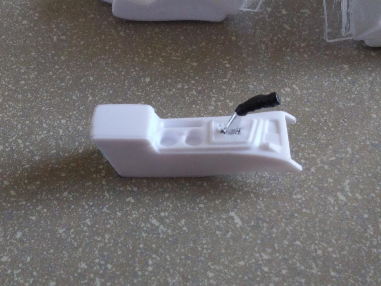 The alternator that came with kit was molded poorly so i had to add this one. The belt is to wide and its the one from the kit. What type do you have espo? I was looking through my parts bin and found the front seat's, rear seat, and center console from newer challenger kit i was given that was missing the body and engine so i been modifying them to fit the car. I started by cutting the rear seat in half and took a section out of the top part to make it sit lower in the car and plated the rear of the seat to make it look like a tilt down seat. Front seats i added some plastic to the bottoms to bring them up where they need to be. And the console all i did to it was enclose the front and rear of it, opened up the shifter area to accomodate the shifter.