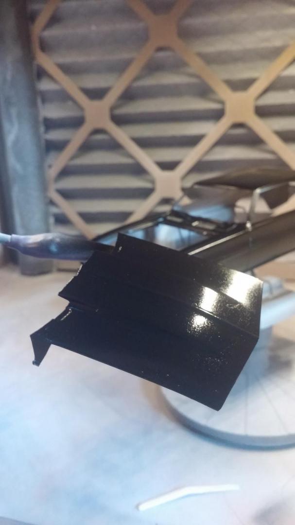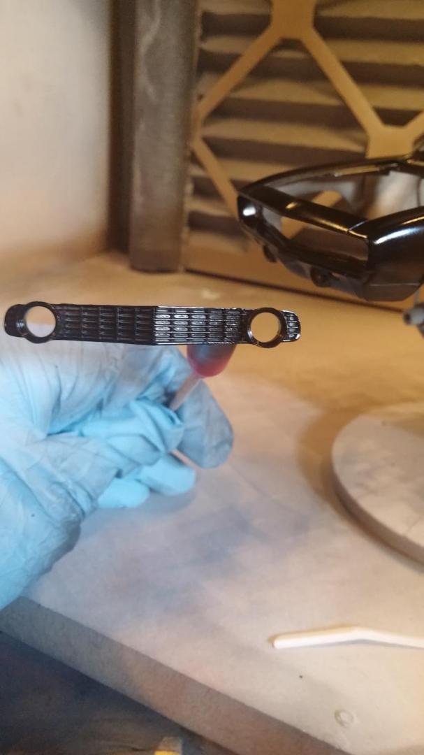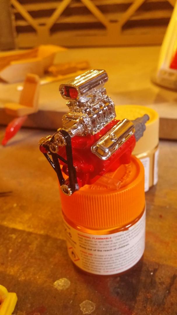 Got the first coats on the body parts, engine coming along. Need a few more coats then wet sanding and clear. Trying to find somethings to do to break up all the black. All interior is black, body, chassis and underbody. Anyone have any ideas on ways to break it up. Really only color i have is the motor and brake calipers