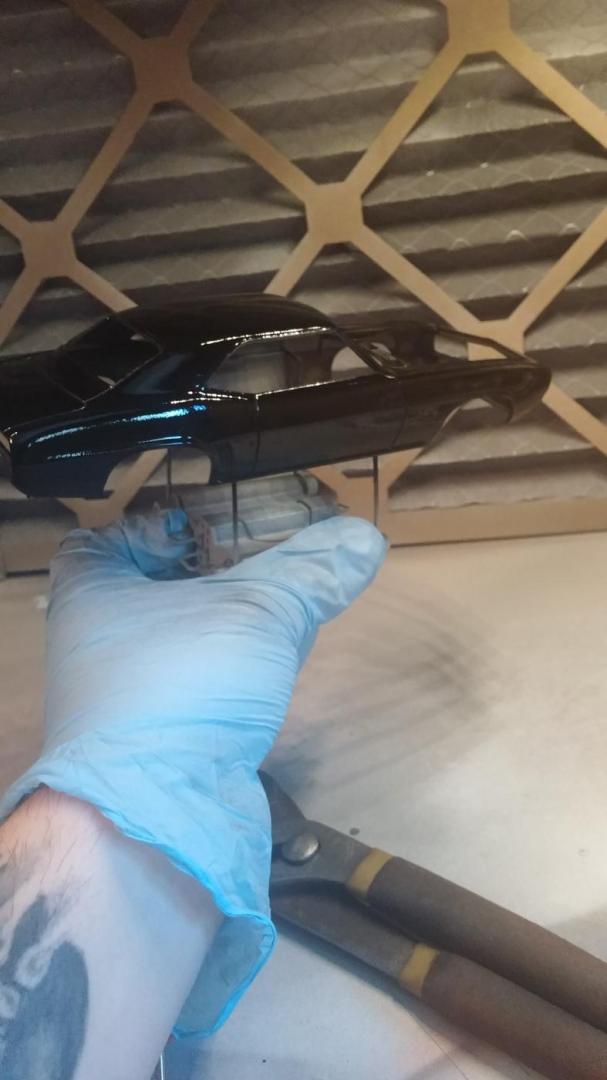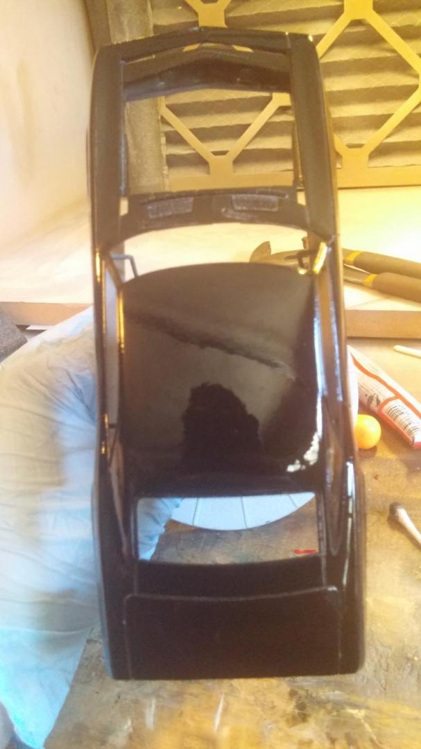 Clear coat on the body, and body parts. Looks good besides the hood. I guess i didnt put enough coats of paint on it or something after wet sanding it again and clear coating i had plastic showing through. So that needs to be sanded and repainted. Its coming together tho. Rest of the panels just need a final wet sand and buffing and theyll be done then will start assembly