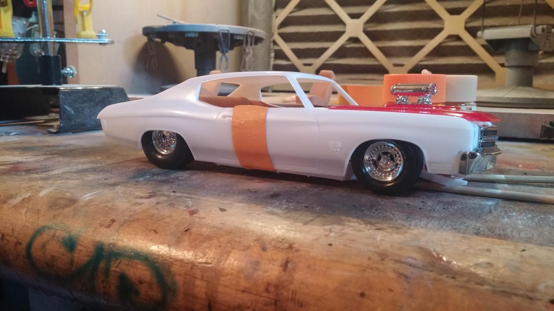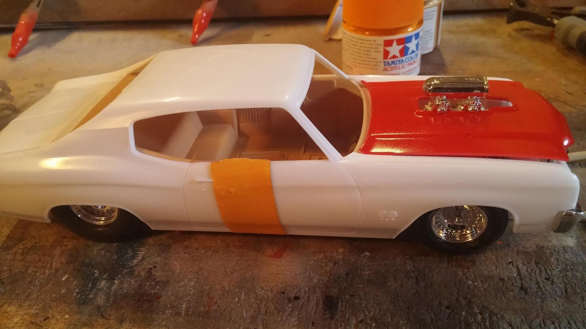 Picked up this chevelle 3n1 a while back and decided to do a quick build on it. Doing mainly box stock with snall suspension mod in the rear to make it sit lower. Other than that just a simple build. Have most of the motor together just need to run wires and headers. Car interior is a nice peanut butter tan and body will be hot red with white stripes.