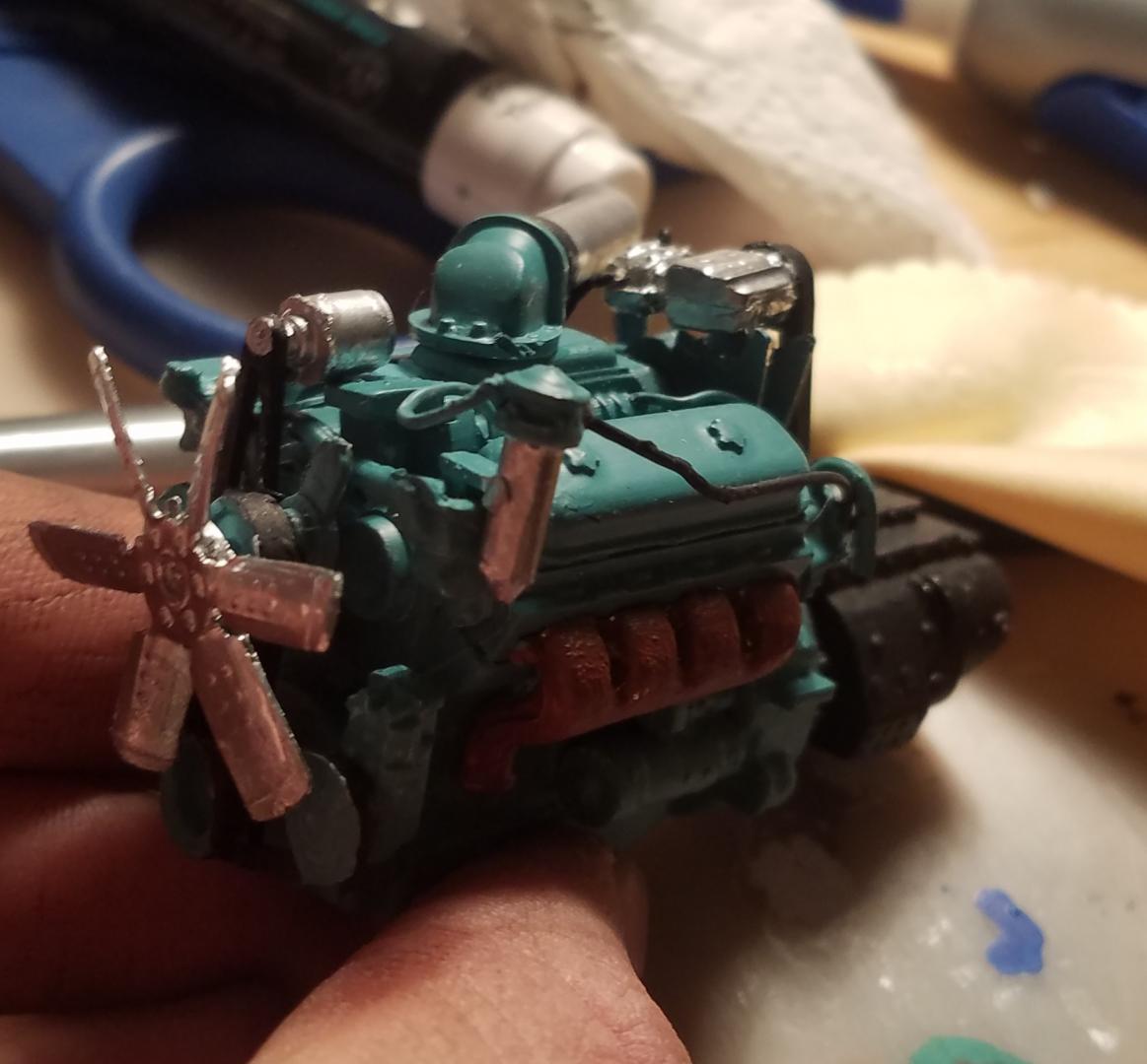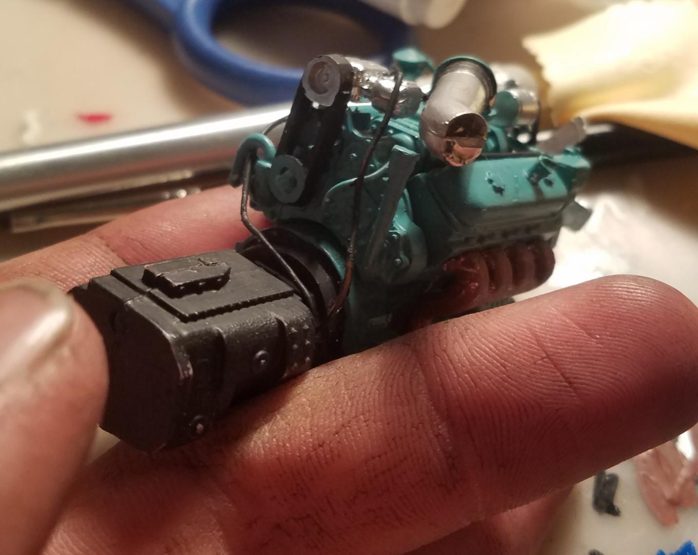 Hello all, its been awhile but in my spare time this last week i opened up my amt pete. I got the motor done and have started on the chassis and body. Im doing it pretty much out of the box, taking inspiration from other members builds. I know, i know peterbilt engines are supposed to be white but i like DD green better. How'd i do mixing the paint? It took 4 or 5 batches for me to be happy with the color. Thanks all!