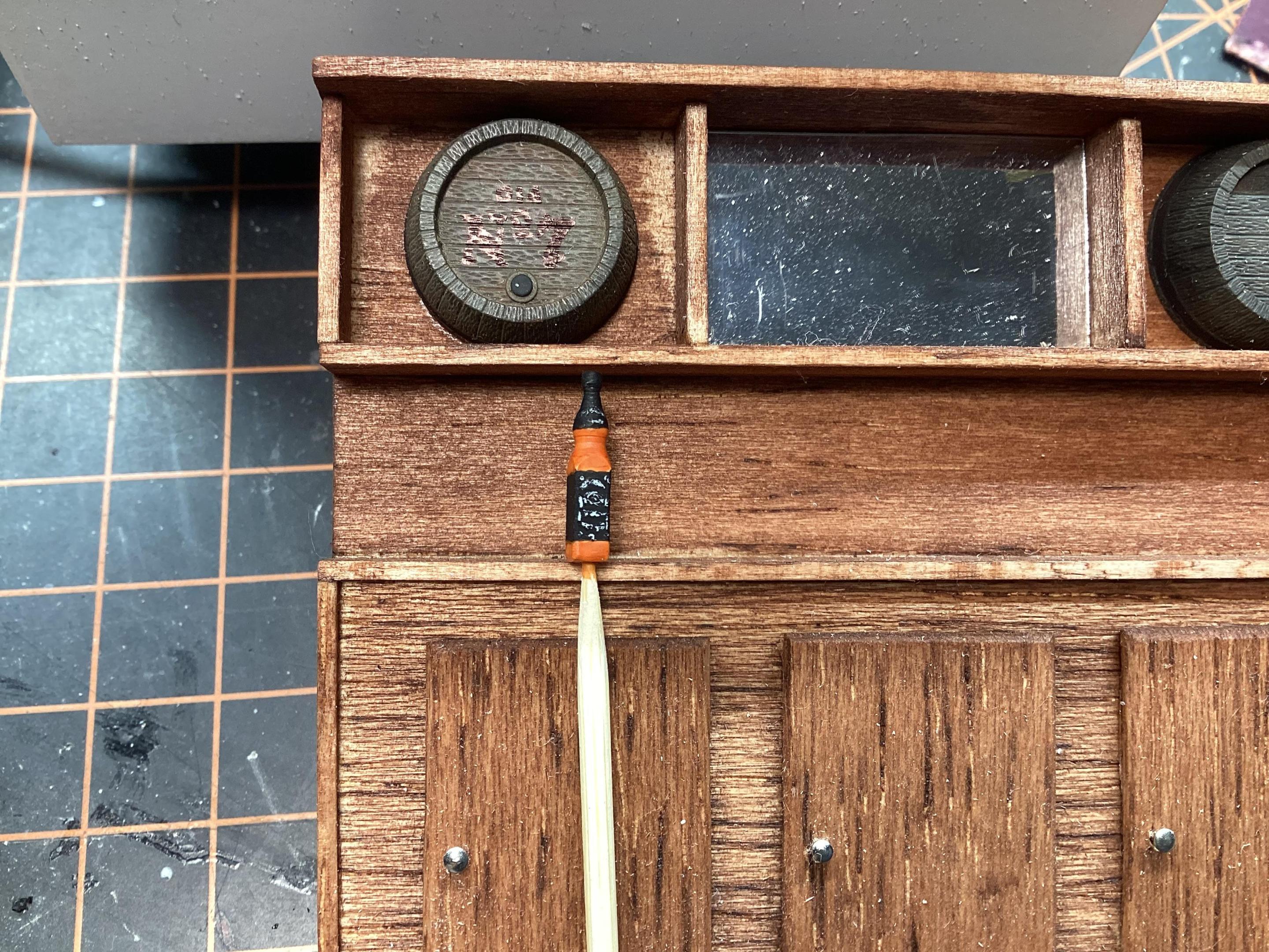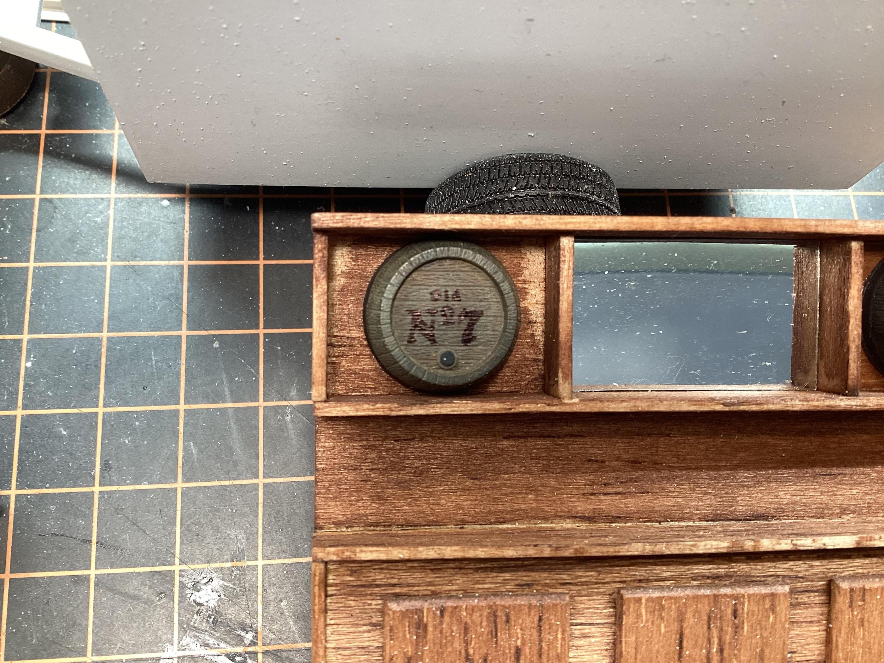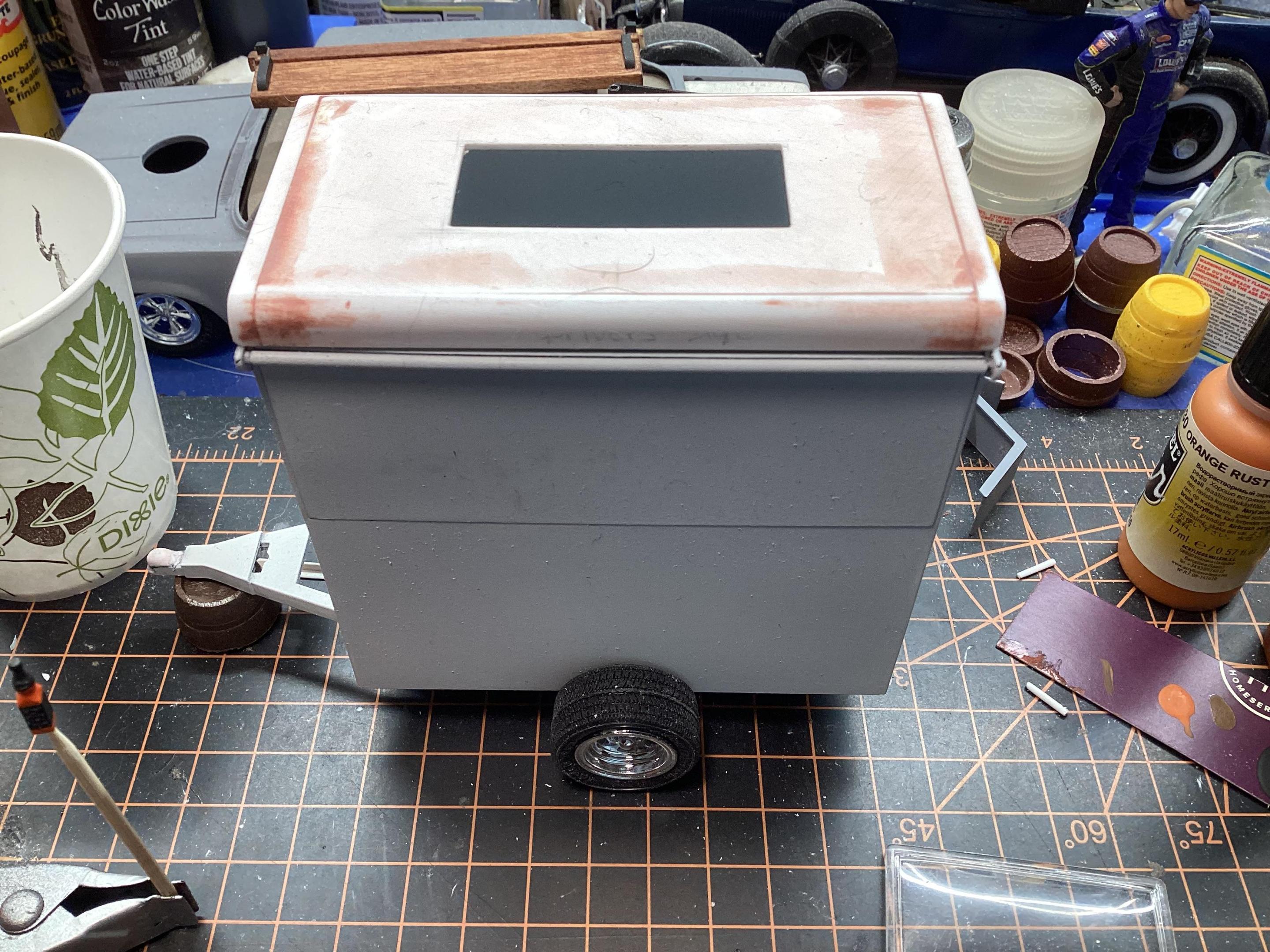 It's been a while but I'm back at it. I repainted the trailer white because my decals are on clear paper. I started putting a top together and added an old sun roof from the parts box to let some light in. I also tried to make a Jack bottle from a piece of square stock, didn't come out too bad so I'll try and make a few more.