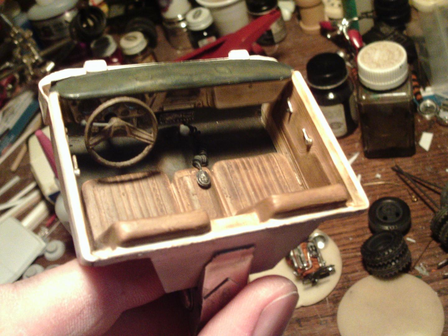 She's about done. I have to build an exhaust And a few other small details. I built the mirrors from wire & added a little plumbing & wiring under the hood. I had to make it dirty because it's a work truck not a show truck. I'll post some better pics under glass when I get time. Thanks for looking. -