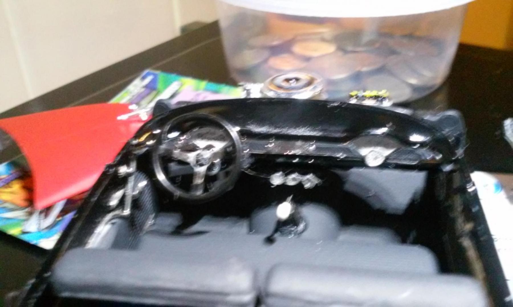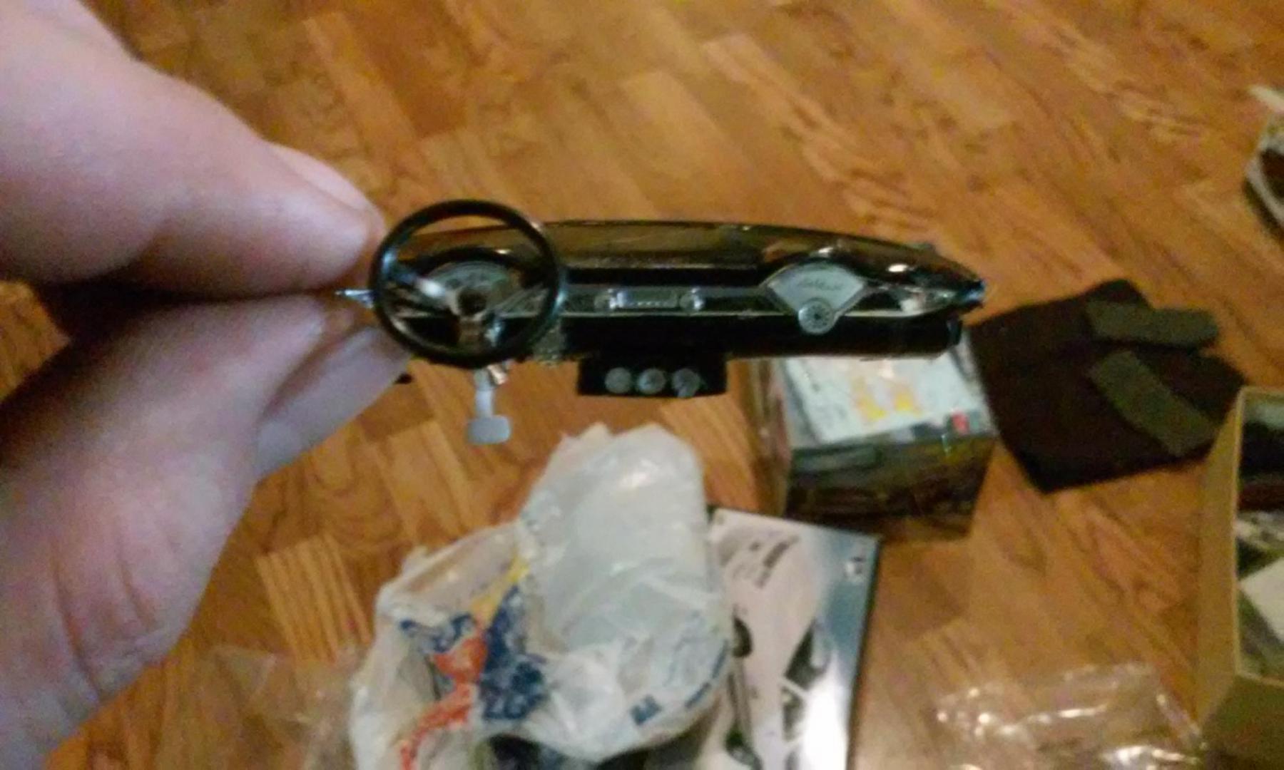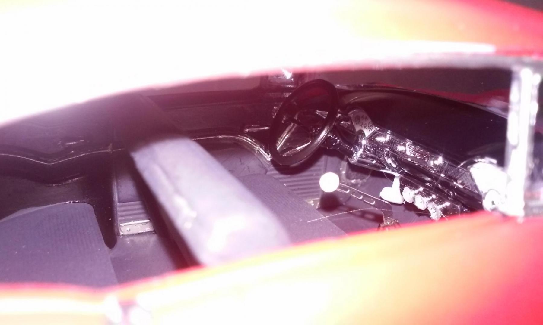 Heres a couple pics of the inside all the chrome is bmf i used flat black and used gloss to brake it up i also used a real metel steering wheel and the three gauges oil temp batt and also i took the 3 on the tree and made it manual the car with it is ratster777's impala if you want to see more go to his profile and comment on it hes my dad and teacher well thanks for lookin