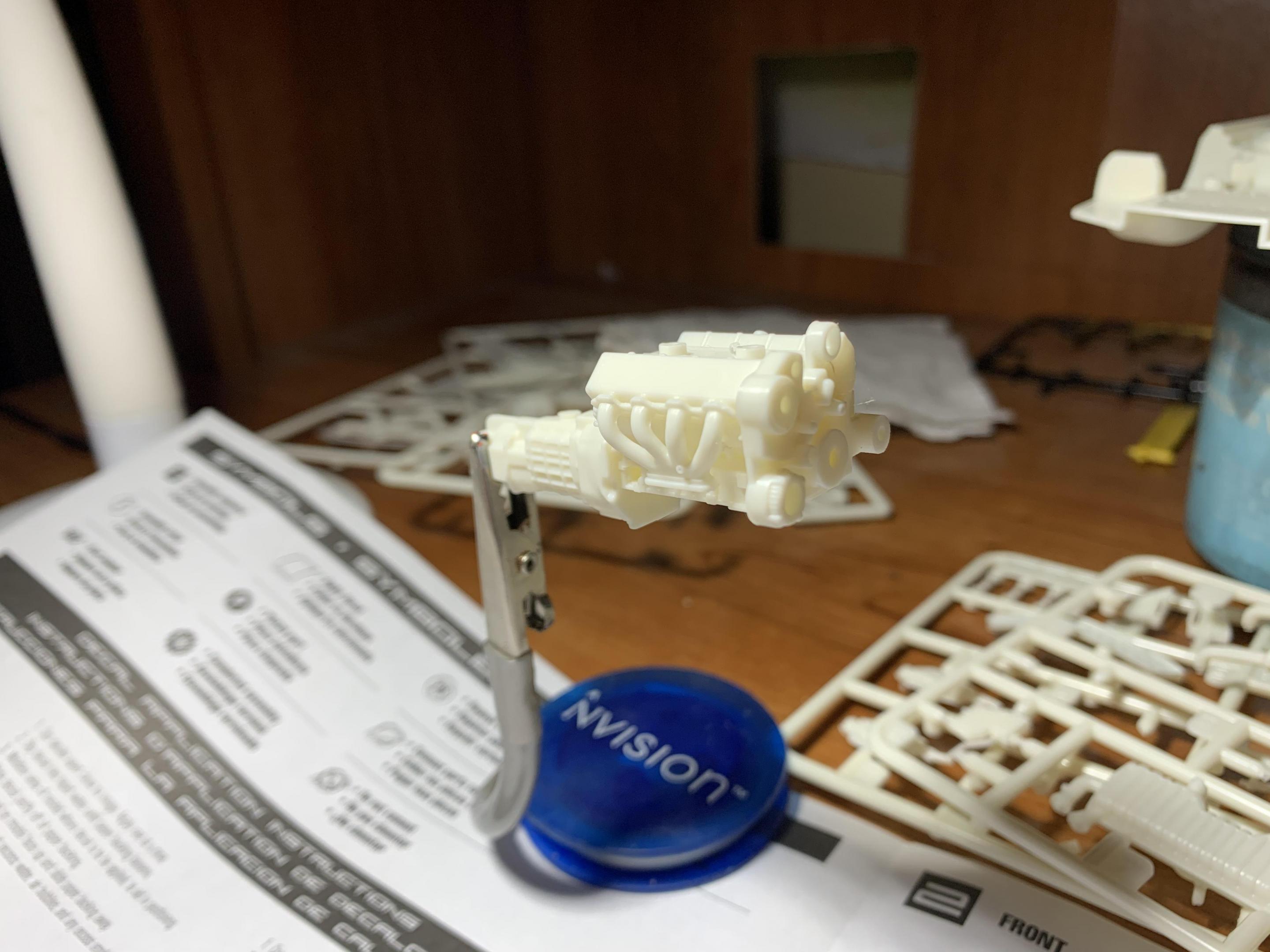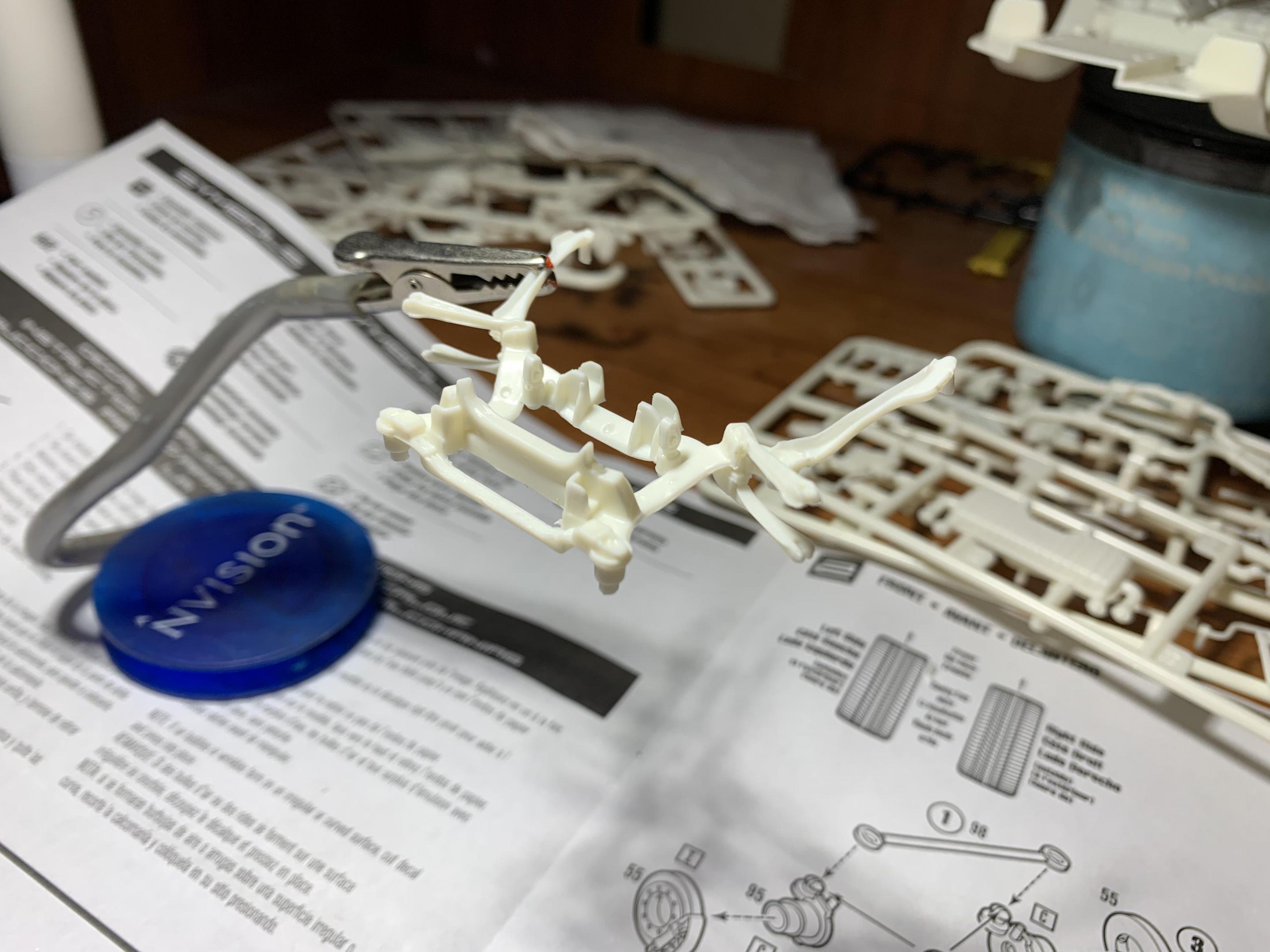 Finally finished up my last project, time to pull another out of the stash. I’m really excited about this one, it looks very detailed. It even has pre-painted window trim, including the rear defroster grid. I got most of the motor and rear suspension assembled tonight, hopefully I can get some painting done tomorrow. Thanks for looking!