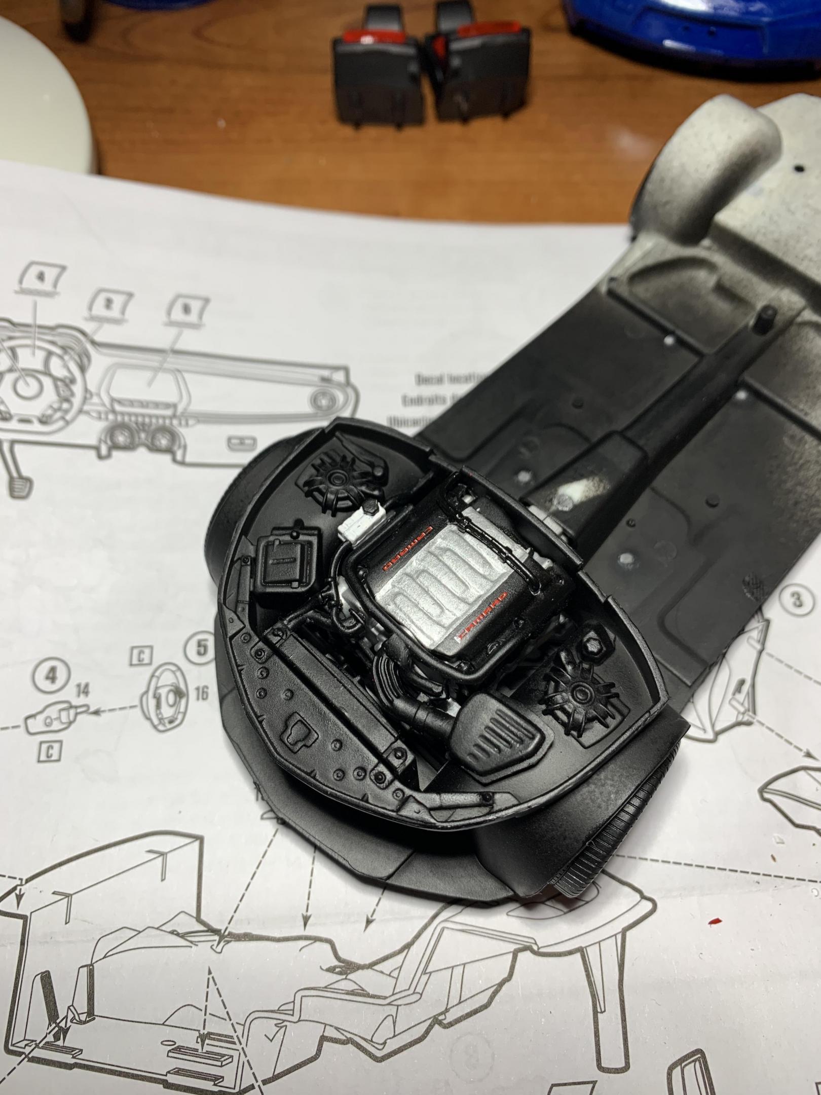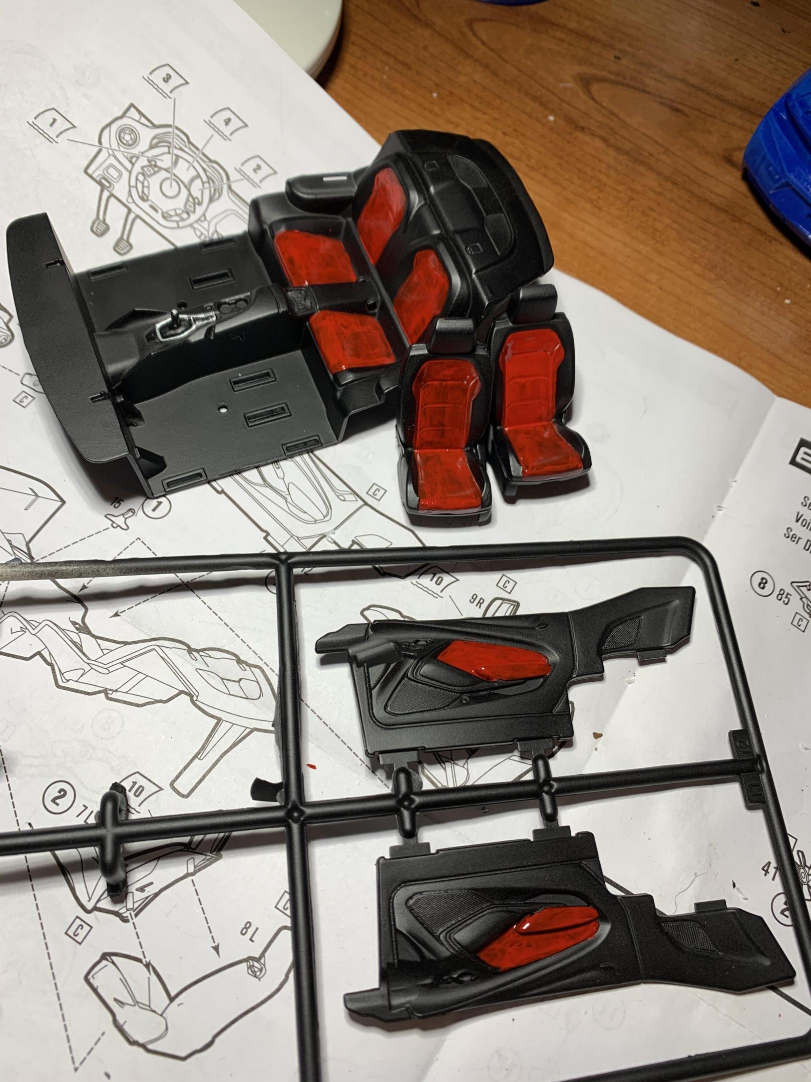 Finally got some free time to sit down and make some progress. Engine and chassis are done, and the interior needs another coat or two of red. I have a couple coats of blue on the body, hopefully the next one will be the last and I can start doing detail work on that. Thanks!