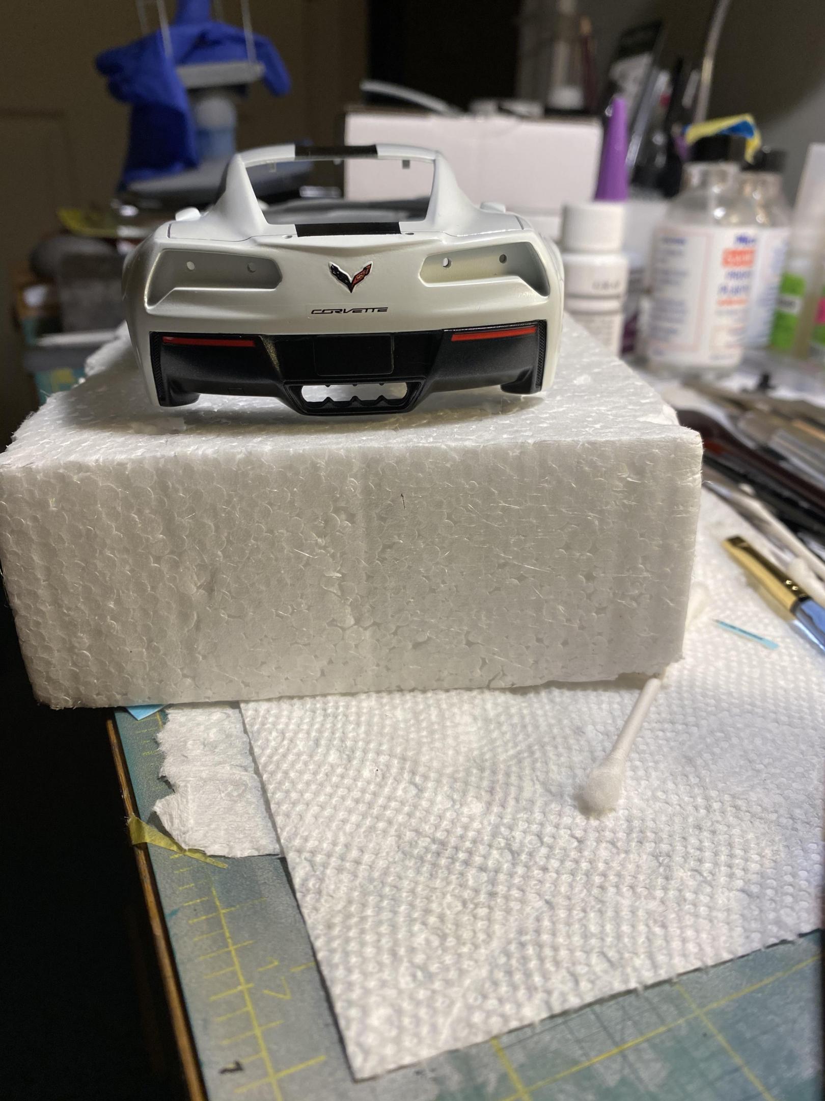 Also painted the rear valence and the side coves, AT Carbon Flash, getting closer to the end --still need to paint the 'A' pillars, the rear brake scoop trim, then add the decals and clear coat. It's starting to come alive!! thanx for following!