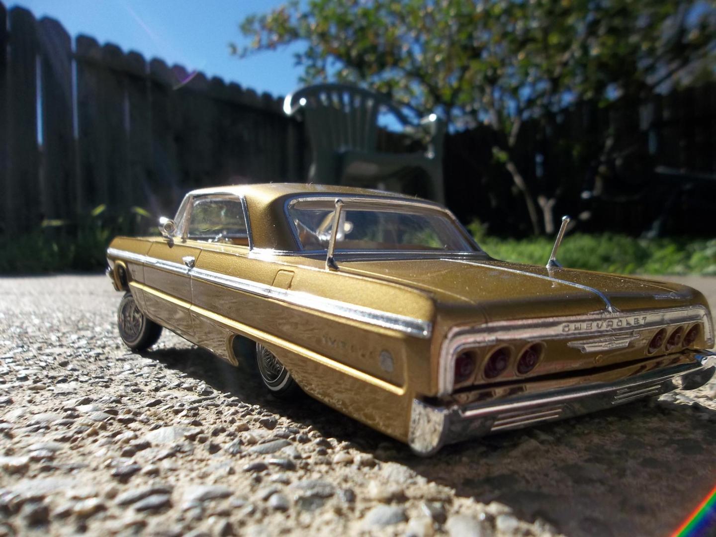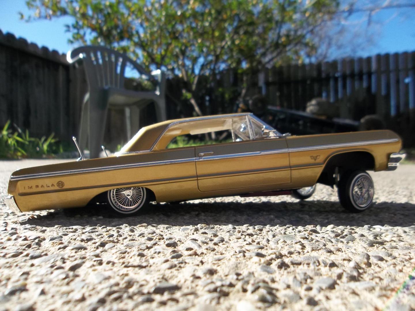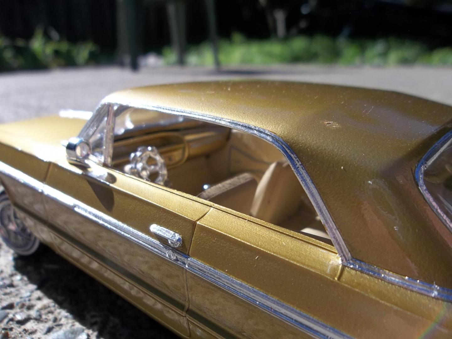 Whats up everyone this is the first car i have built in a long time started the kit years ago and some how lost the engine. This was also my first time using bare metal foil. Paint is duplicolor gold wheel paint w/rustoleum gloss clear over it. Pegasus deep d'z. Interior is desert sand from walmart.
