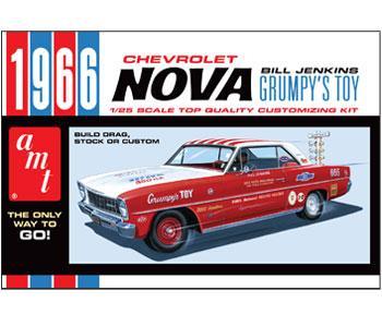 This was my first time to try hand-painting letters and artwork directly on the body of a model car, which turns out, is a whole lot harder than drawing on a piece of paper laying flat on the table, but it was a fun experiment! I’m gonna be trying more of this on more projects soon! This is my tribute to those crazy fellas from the 50’s and 60’s who lived to drag race with whatever they could get their hands on….probably built in their Dad’s garage…the big blown souped-up motor was the most important thing. Winning on Saturday night was all they could think about all week long. And maybe safety wasn’t exactly first on their mind--just winning with the craziest fastest car out there! This is the excellent 1/25 AMT ’37 Chevy kit that comes with the option to build one of three ways, and I chose to build a mad gasser in honor of those drag racing pioneers. The body was primed with Krylon Gray Ultra-Flat primer and allowed to dry outside for about an hour while I took my oil pastel sticks and scraped 5 colors into powder with an Xacto on a piece of wax paper…Orange Rust, Yellow, Light Blue and Brown. I used cotton swabs to mix those powder colors together a bit, and then rubbed the body down to appear severely weathered, like it was finally rescued from the junkyard. I sprayed Testor’s Dullcote over the body to protect all that weathering work, and to prep for the task of hand-painting the lettering and ball-and-chain artwork -- the lettering was done with acrylic paint markers, and the ball & chain was done with the edge corners of the pastel sticks that I made the powders from earlier. Then a second coat of the dulcote to protect the artwork. The chassis was painted Krylon Red Oxide and set aside. I added a few of my own touches to the beastly 427 powerplant -- like the MOROSO valve covers, some CRAZY PIPES from a Miss Deal funny car kit, velocity stacks made from Evergreen Styrene tube, a parts-box blower, and I made the fuel pump tubing from some clear plastic bead string stuff I found at Michael’s that I painted with Tamiya Clear Yellow acrylic to appear full of gasoline - then hooked up to the kit-supplied fuel pump. The rear tires are the most excellent pad-printed M&H dragmaster piecrust slicks from AMT parts pack--the Cragars are lightly coated with Tamiya Light Gunmetal to bring the kit chrome shine down a bit. Seatbelts were made from masking tape painted the same Light Gunmetal, and P/E buckle hardware was added. Finally, I used Tamiya Weathermaster Orange rust to give the door handles and headlight bezels that neglected look like it was just dug out from years in the junkyard. I also increased the ride height in front and rear from kit specs by adding cut / stacked & painted pieces of balsa wood blocks. This was a BLAST to build! Thank you AMT.