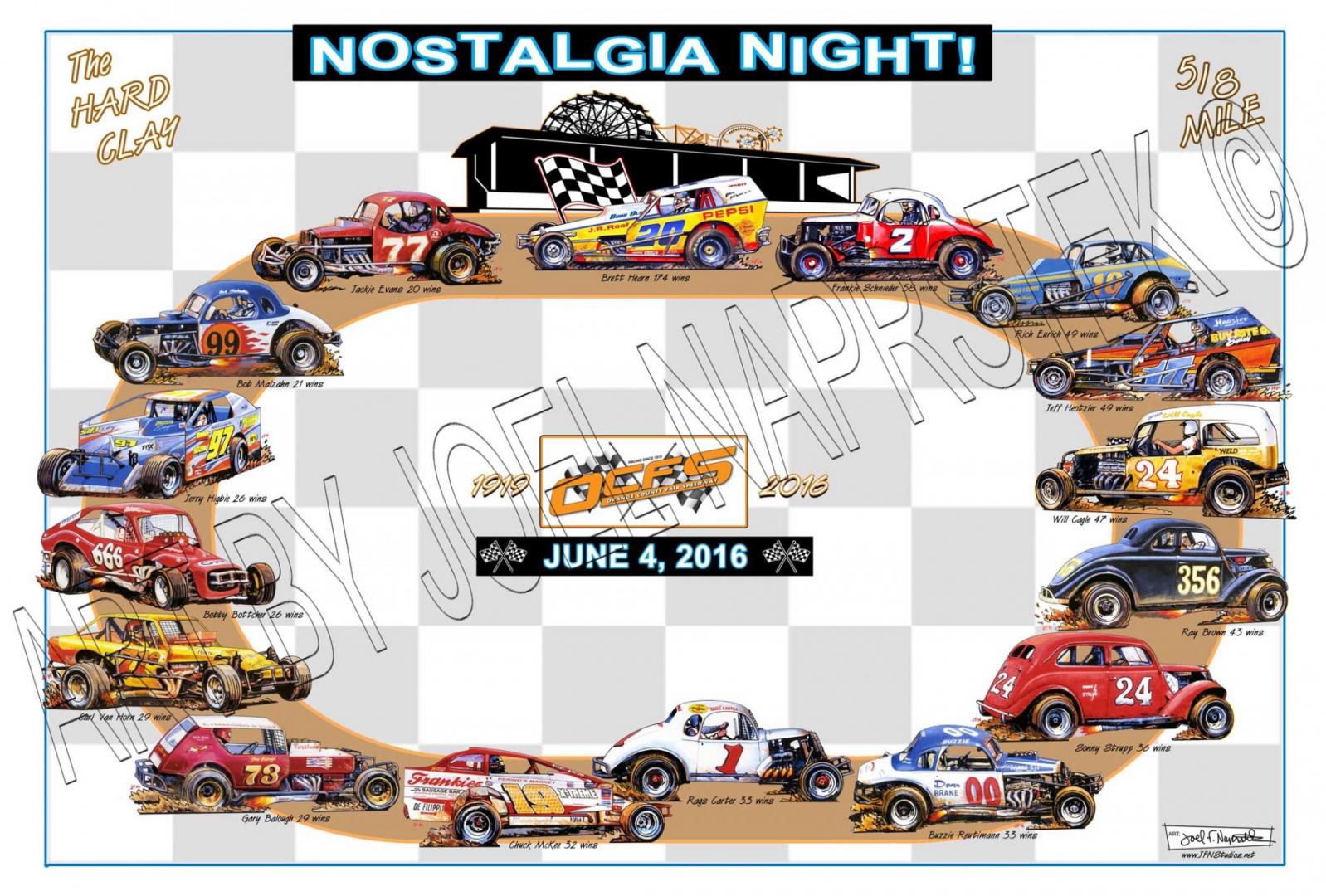 11. I know this isn't the art thread but here's two art assignments that I did for an upcoming event that should be of interest to all here. The oval image will be a give away poster to all attending the autograph session on the 4th. There will also be a large 3ft banner of the poster given away to one lucky number found in the night's program. The second piece is the event promo/advertising card that I did for the event. Many vintage oval track cars on display and the track, many former drivers and crew in attendance also. I hope to see some of you there! Joel www.JFNStudios.net