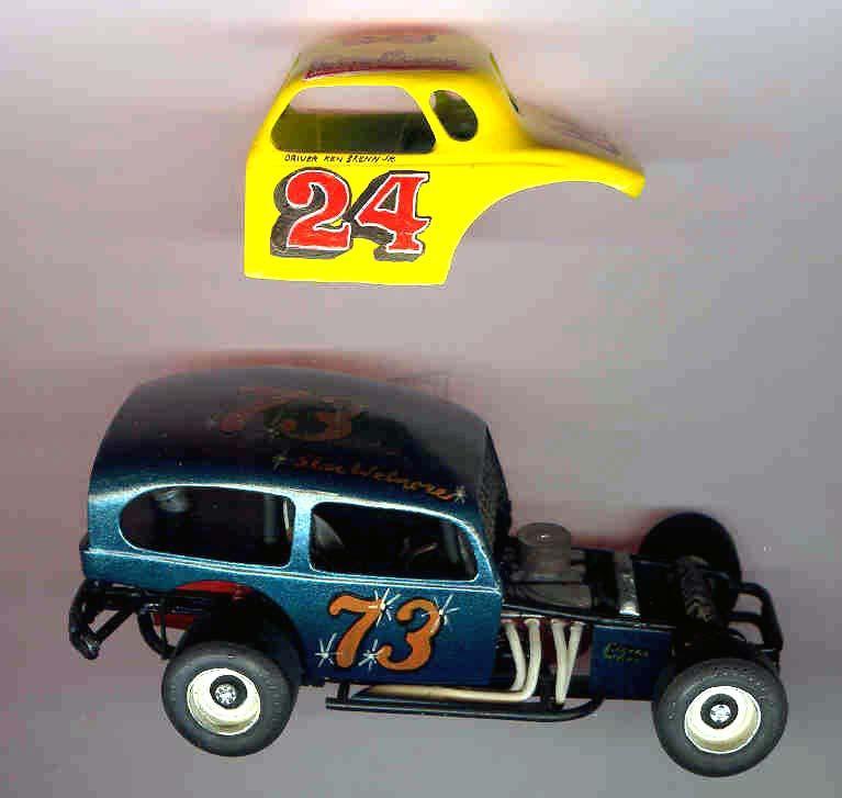 10. Some interesting and great models here, variety too. Thanks to all for sharing. Here's another shot of some of my 1/32 scale efforts. The #24 is a never completed replica of the Stan Ploski-Ken Brenn coupe, made from a '36 Ford coupe kit. The other is another angle on the Stan Wetmore #73. Both were done back around '74-5. Joel