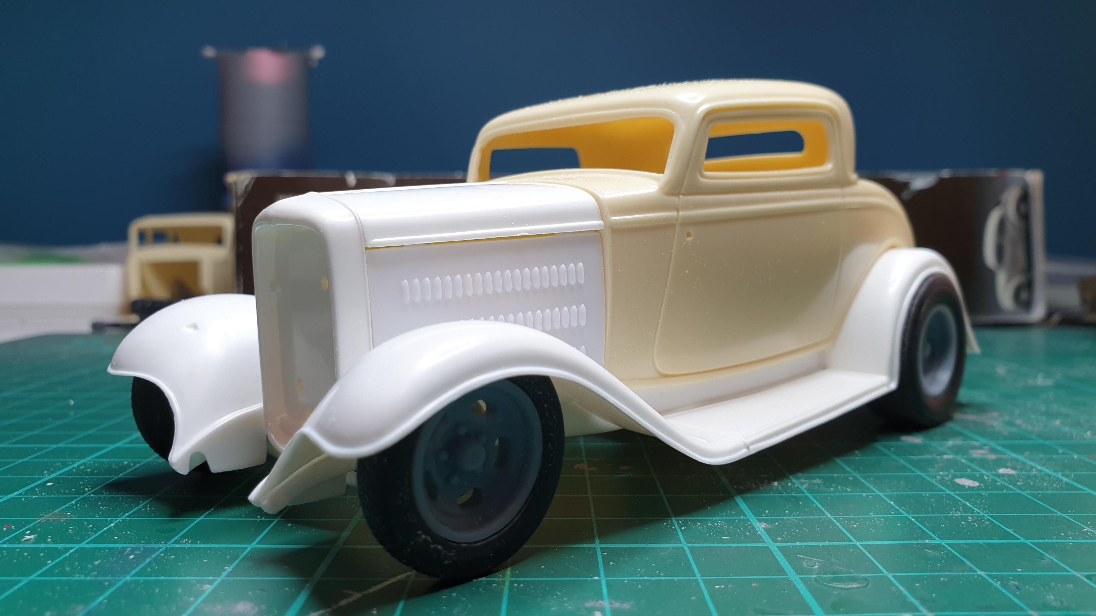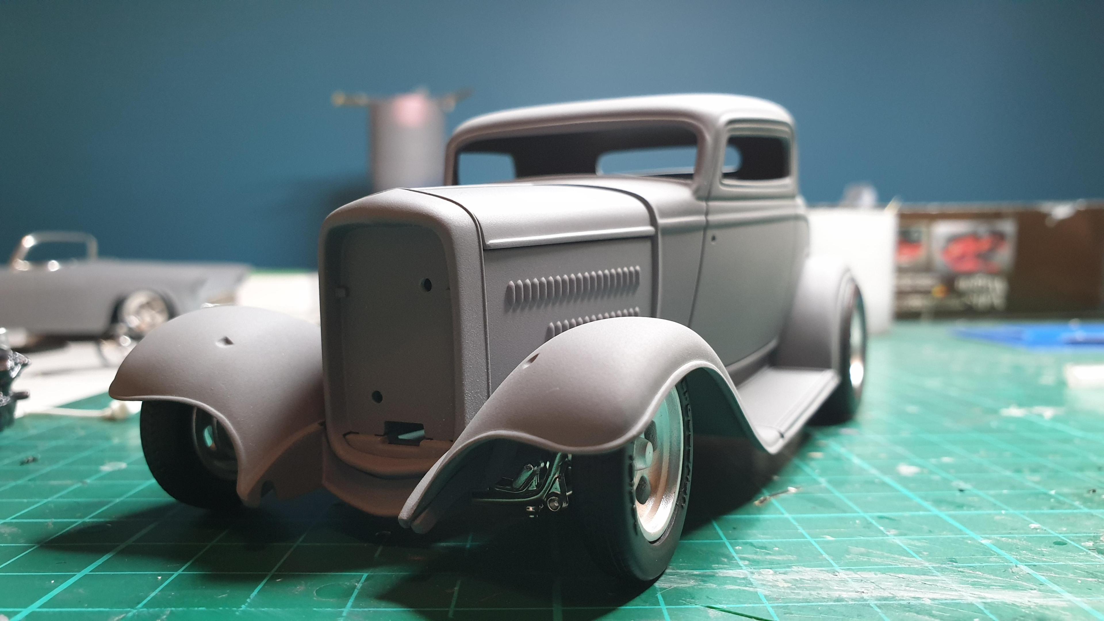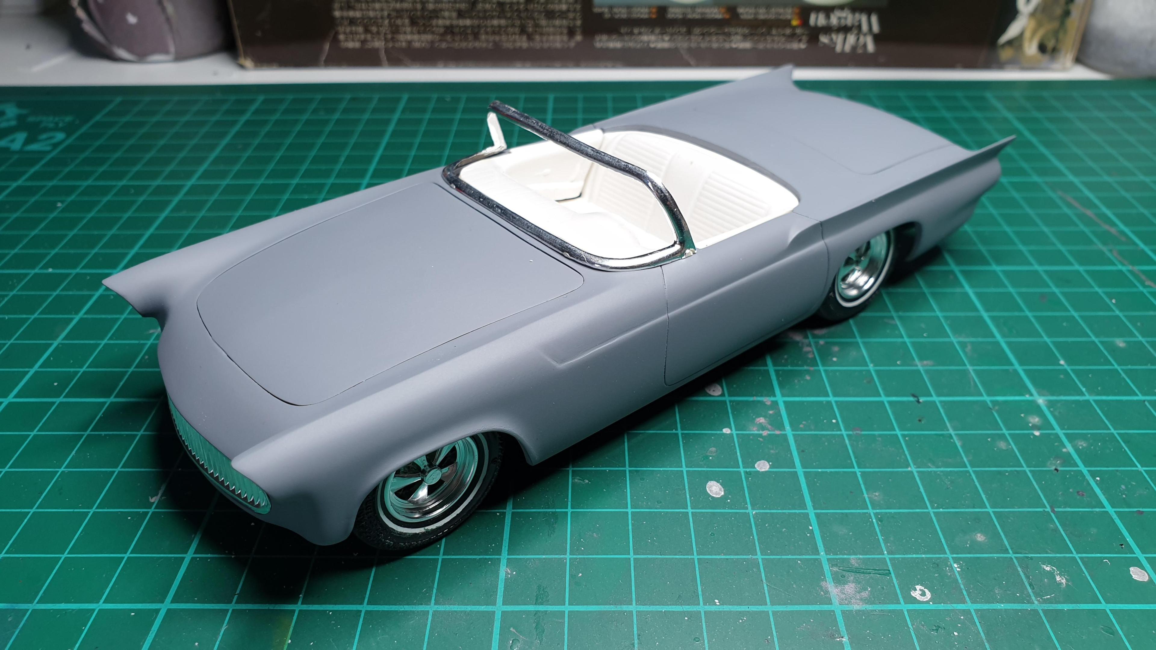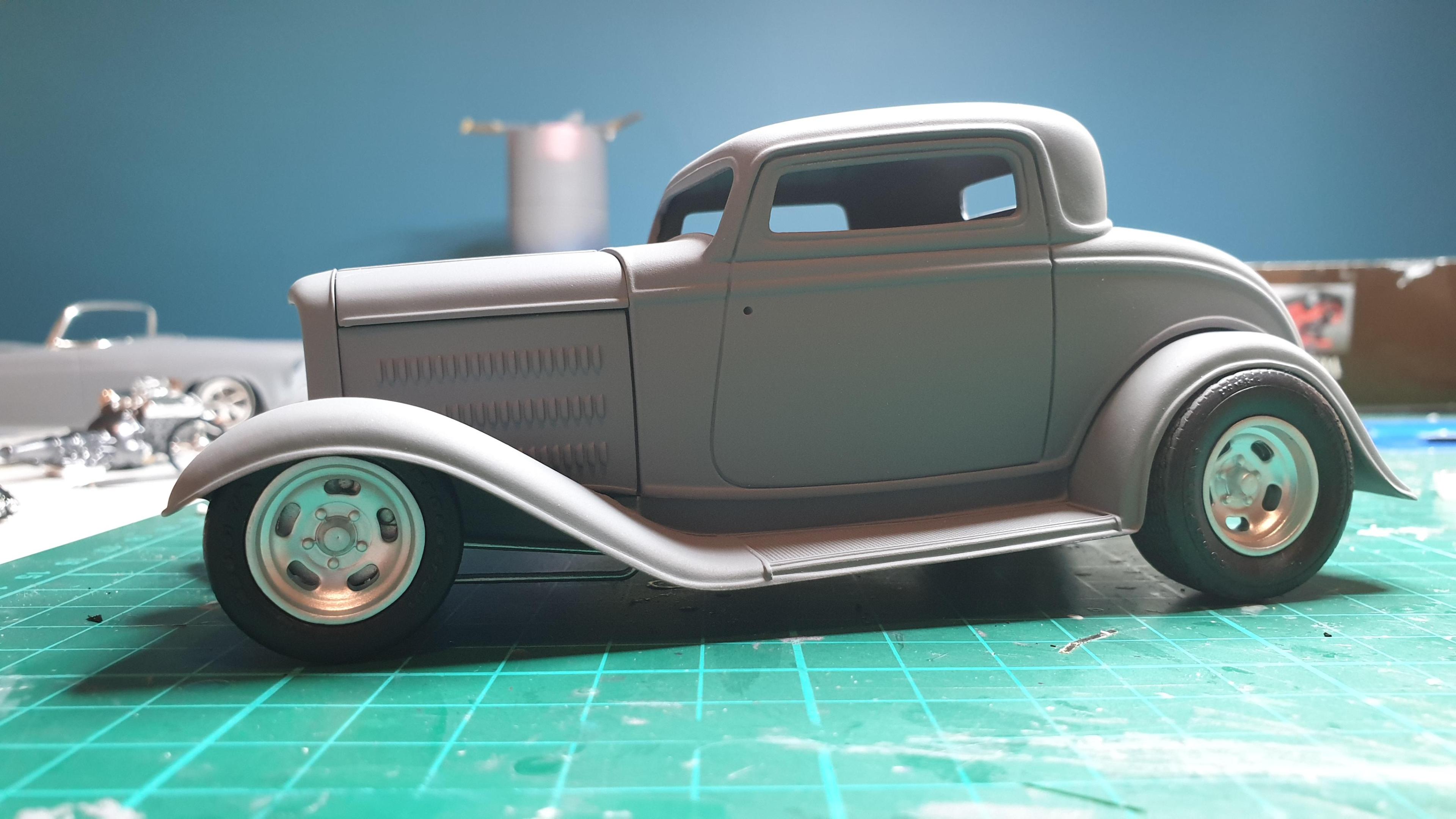 As my 57 T bird needs stripping and repainting I decided to get the 32 in primer I have also painted the wheels. Couldn't resist a quick mock up. Thanks for looking Lee