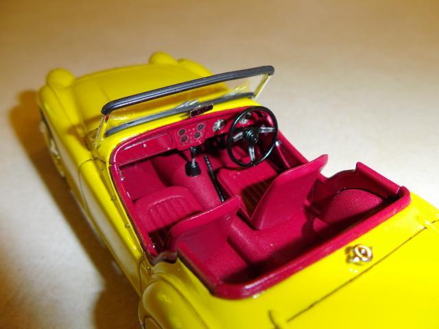 Inspired by the Photo Feature in Collectible Automobile February 2003. It's strange, but the Blackberry interior went with the Olive Yellow exterior at the time. Started with the 80's Gunze Sangyo kit with the usual rubber-pieces-that-should-have-been-plastic issue. The seats, door panels, and interior trim were all molded/cast in resin then rattle can painted in a color that matched perfectly. The fender skirts are plastic sheet, and I think they really enhance the lines of this car. The only other fussy item in this kit is the windshield, I think it has more parts then the real thing! Thanks for looking!