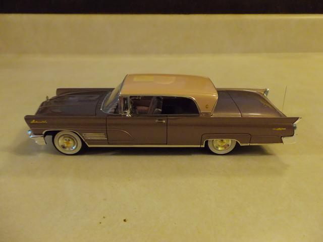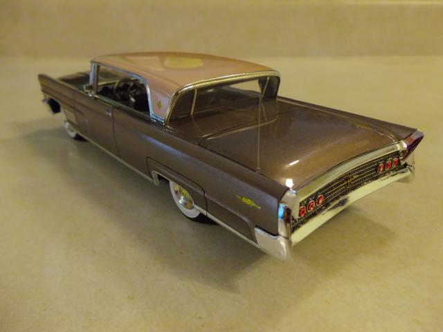 Reissue of '59 Imperial by Model KIng. Molded/cast chrome taillights in red-tinted resin, added mirrors, antenna. Interior has flocked carpeting, power window switches by Model Car Garage, and foot pedals out of the parts box. Gave the roof the option treatment of brushed metal/vinyl using paint and texture. Paint is custom mixed lacquer under two-part clear. Thanks for Looking!