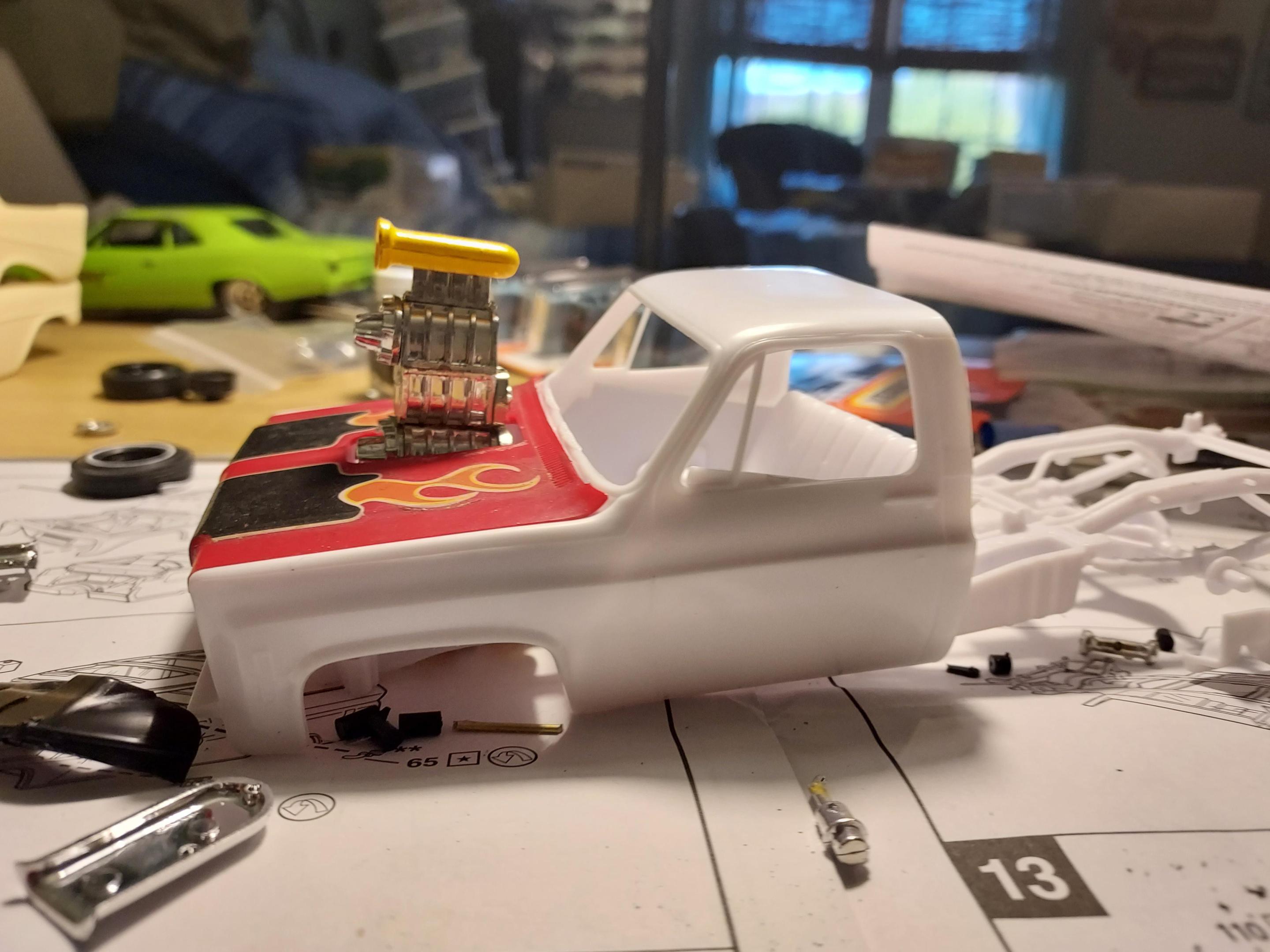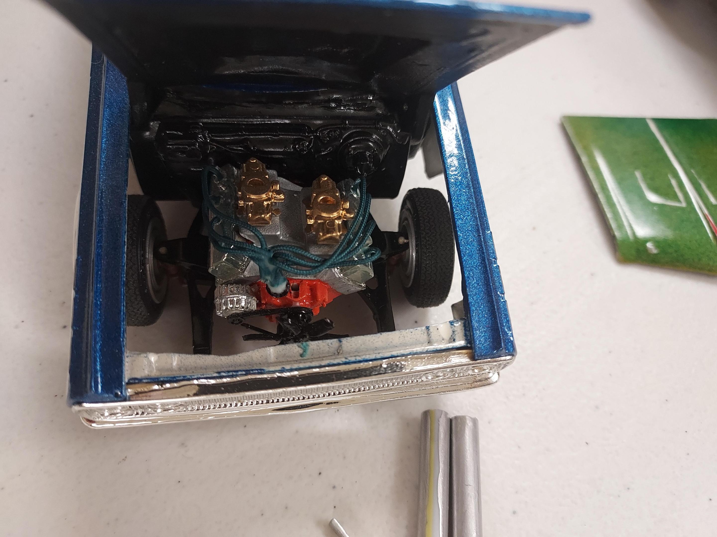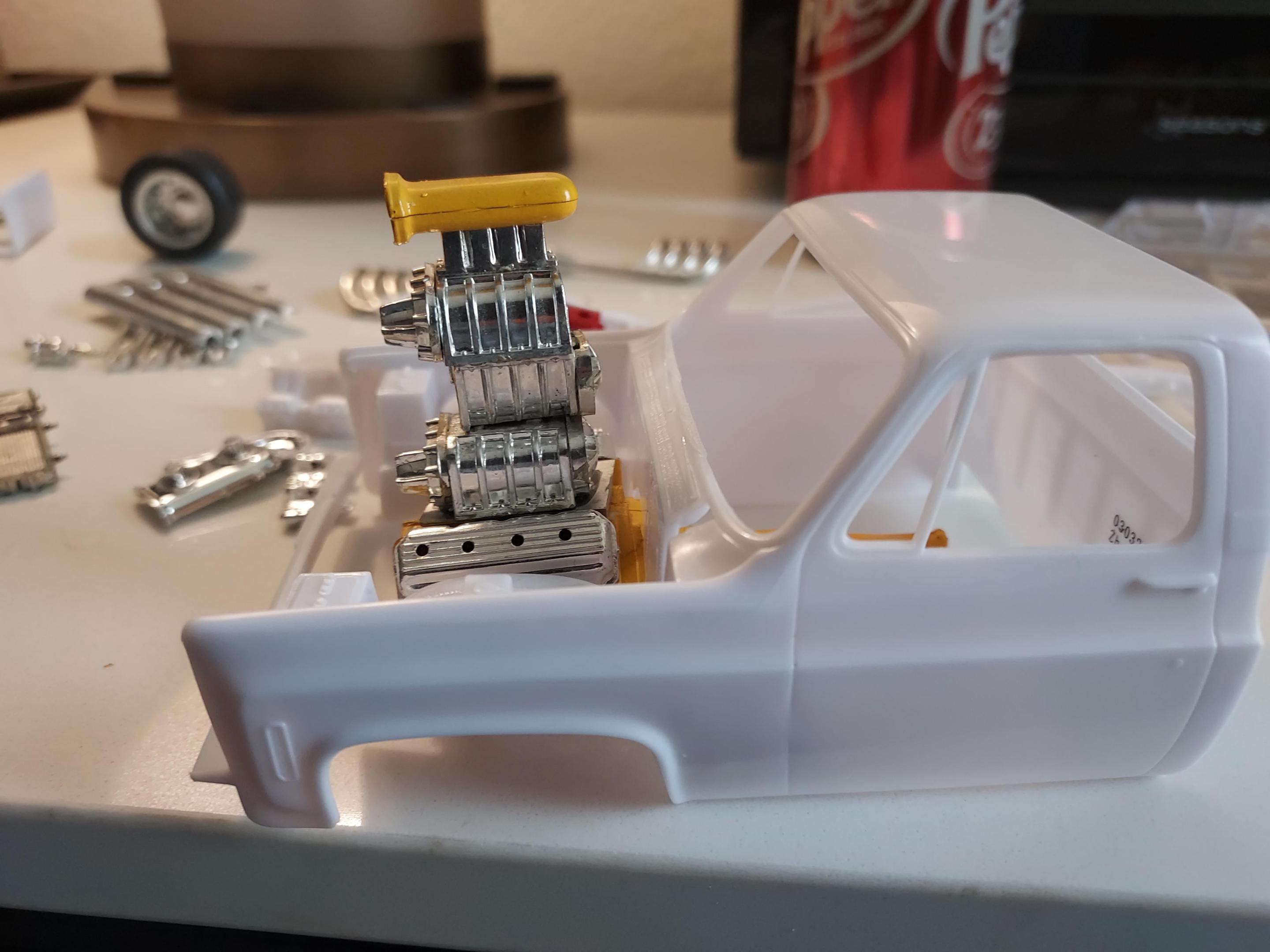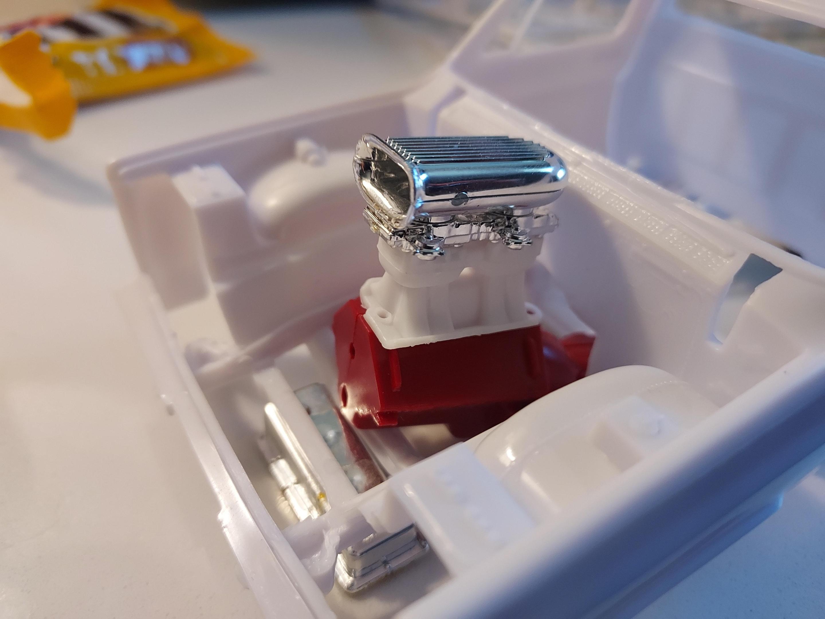 Oh and I got this Hemi from the Hard Hat Hauler I'm thinking about trying to fit into the truck also...Its 1:20th scale but looks so cool! Talk me out of it please! ??? -