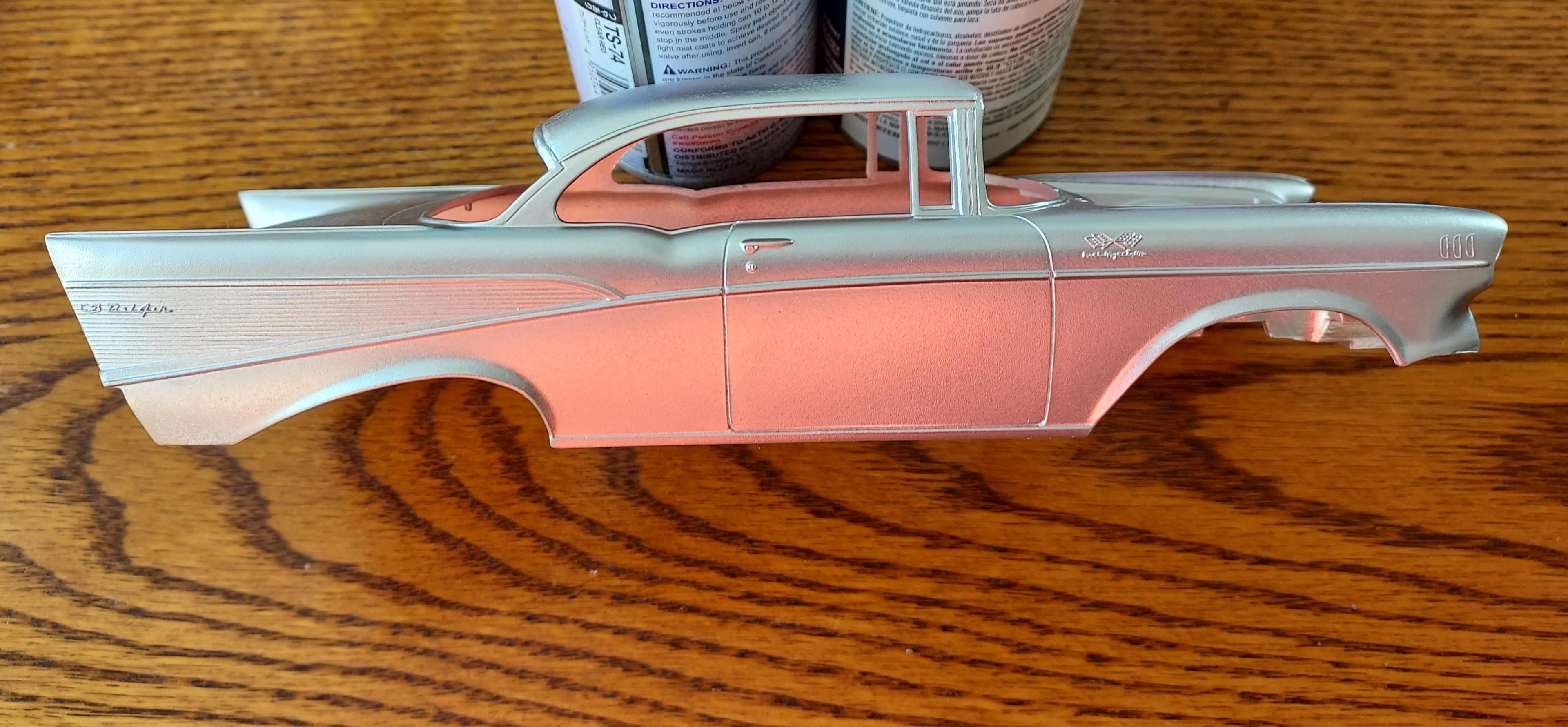 4. Wow! You're not messin around! This is fantastic! I am totally amazed at how you kept up with the car for so many years... I wished I had some of my old builds, and the fact that it's in that good of condition is a testament to how well you take care of your things. I agree that you shouldn't repaint it... good call. I wouldn't want to risk the Personal attachment... something to be said about an original paint job. and one you did as a youngster. I think a good wet sand and polish will be perfect. I can't wait to see it finished! My uncle brush painted his builds and I was always amazed how smooth they were. That should give a great result. I like the purple 57 with the High Roller chassis too! I had seen that posted on here before and thought it was cool. I'm definitely inspired to work on mine now! I hope to get some work done on it this weekend. I'll be watching it come together with excitement! ?