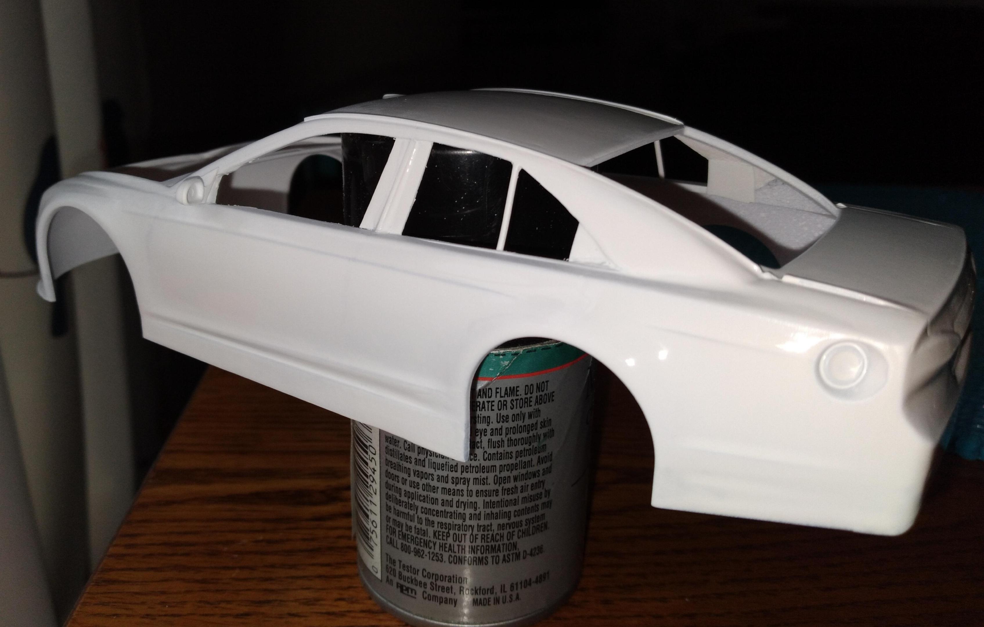 I'm starting to think Tectonic Pearl isn't so boring after all... and these wheels are from an SRT, they are the biggest diameter I have to fill up the wheelwells on the Nascar body... I'd like to find some police issue steel wheels but for now these will do. There are some diecast cars with the correct wheels that I'm gonna get serious and find eventually. -