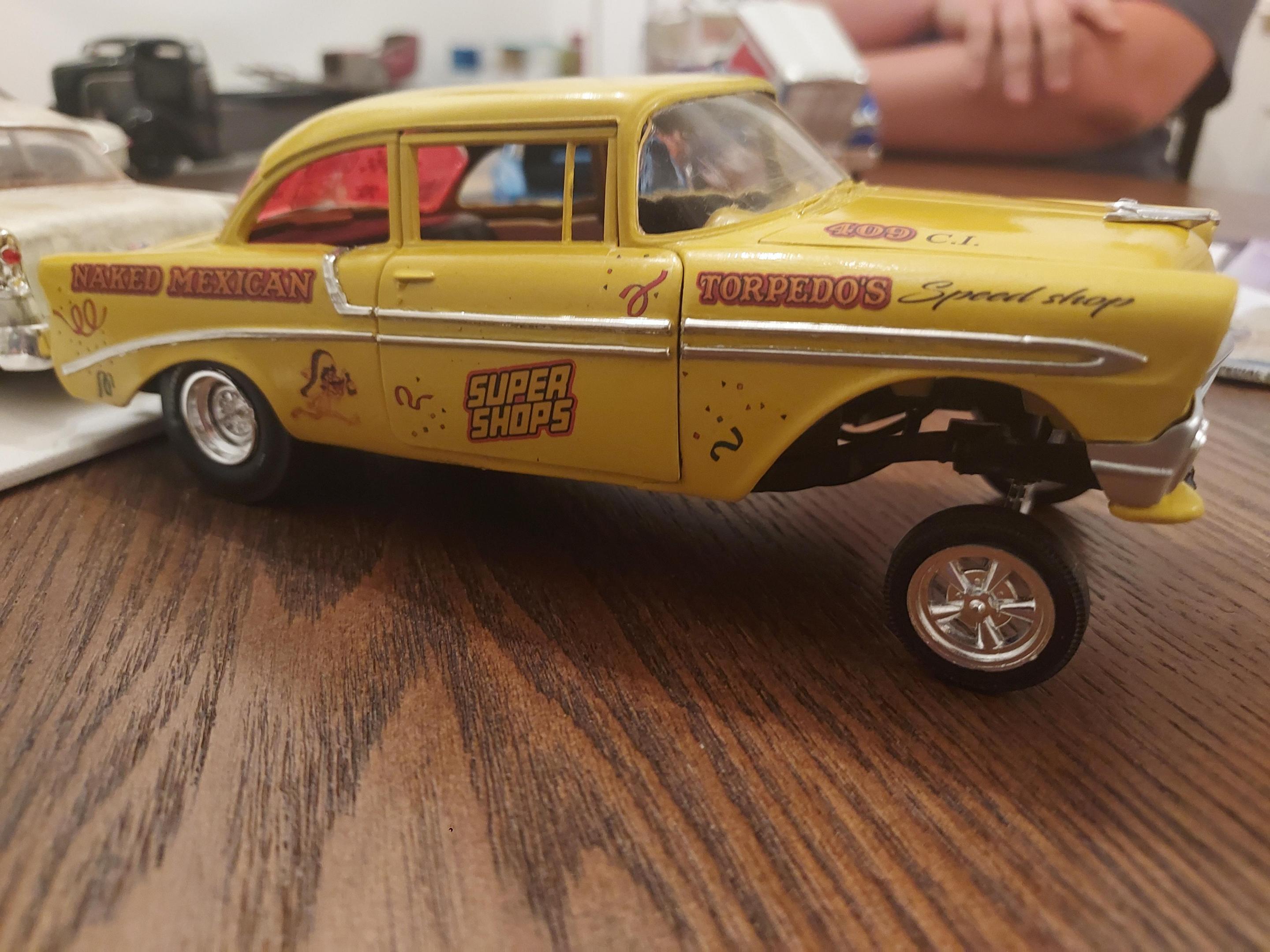 Gassers are big in my area... and our local dragstrip holds special Gasser events, entrys must have a straight axle... I guess I'm more into nostalgic racing because of it's grass roots style. To me It's heads up, Beat the best to be the best, old school, raw drag racing. Seeing real "Up and Over" cars on the street is exciting, not something you see every day. That 57 is ready to be placed into a diorama and I agree it needs a barn... Yeah, I do think those pics after the clean up did look cool... I'm working on another car with the same colors and light weathering. I'm gonna use those wheels on it too. I'm glad I have the photos at least for now.