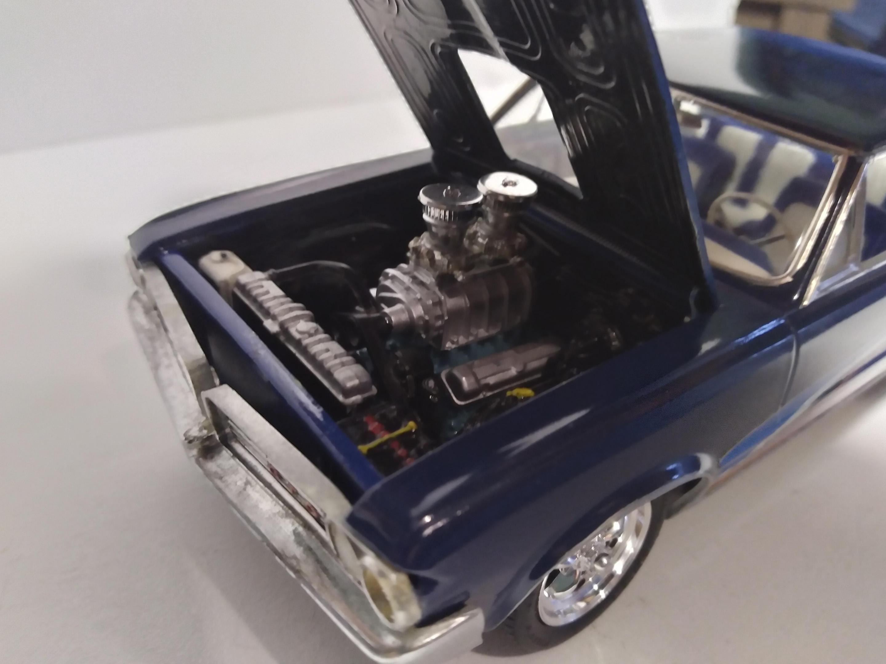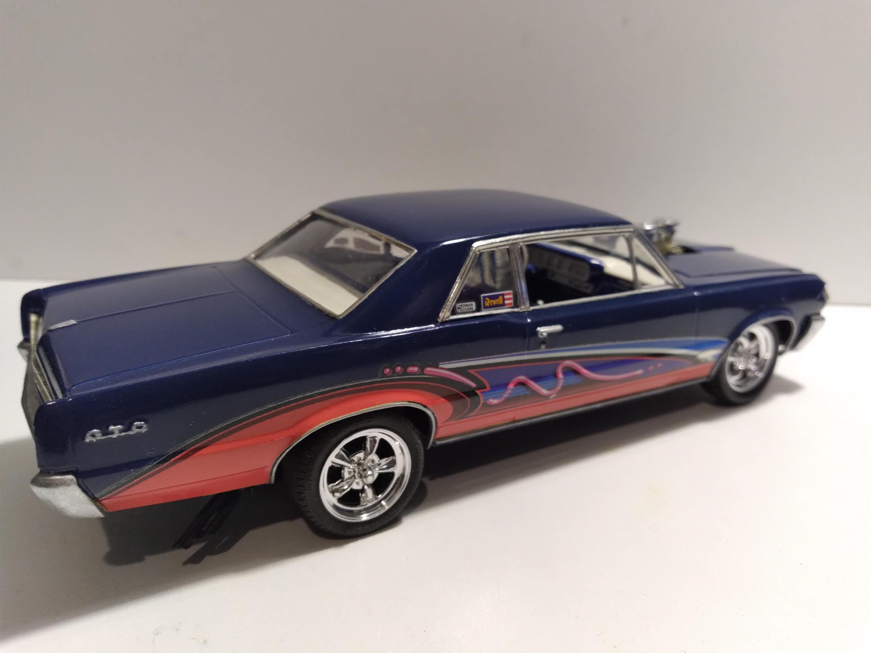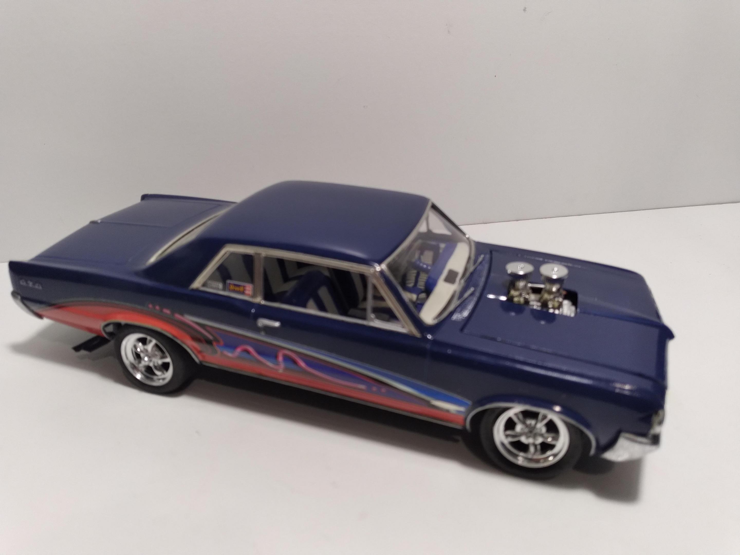 Some of the guys from our local club did a 24hr challenge for the Lemons race yesterday. The theme was to make a Lemon model kit great or better in 24hrs. Gluebombs, uninspiring, models, or kits that have problems etc.. etc.. Bonus points if it fit creatively into the race Iike the cars you see in the actual race. I chose to resurrect this 64 GTO build up... It was painted an ugly shade of Royal blue, so I cleaned, clear coated, and polished it. I added BMF and new wheels and tires. The OB went crazy with copper wire for details... I eliminated those too. The engine was welded to the frame so I just painted around it. Hope I did it Justice lol... thanks for looking...