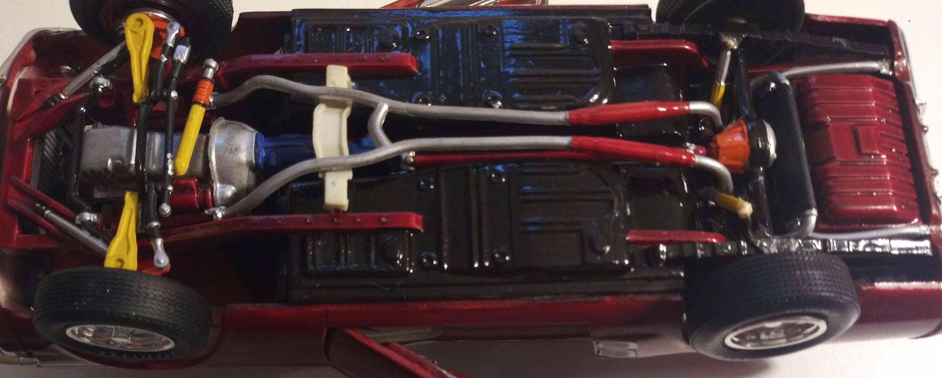 I agree, because of the "modern" tooling...Very well designed and ahead of the game for back in the day and still holds up with today's standards. I have a couple copies. I'm inspired to build one of my own now for sure. However, I won't be opening the doors on my build. Thanks everyone for the comments. Giving the fact that it looks like he put alot of effort in the car, he'd be proud to see it displayed on someone's shelf. It's a reminder to me of kits, when I was a kid, I'd see friends from school build... with the gloss brush paint and "preferred" color choices on the chassis. I know I'd get a Testors bottle paint kit every year at Christmas. I think it's a good representation of those style builds. I read alot of Hot Rod & Super Chevy magizines so I didn't necessarily use alot of different colors on my builds, rather trying to match the real cars in the photos. I discovered silver and black would make a nice "cast" color so my chassis were often black, silver, and a mix of the two. Anywho, Thanks agian for looking...