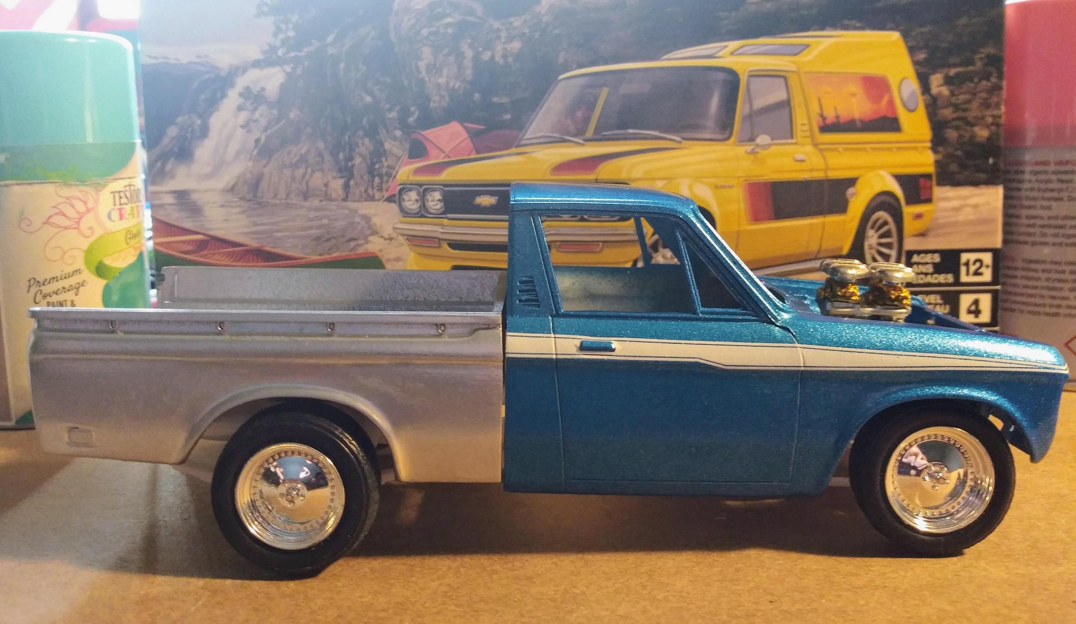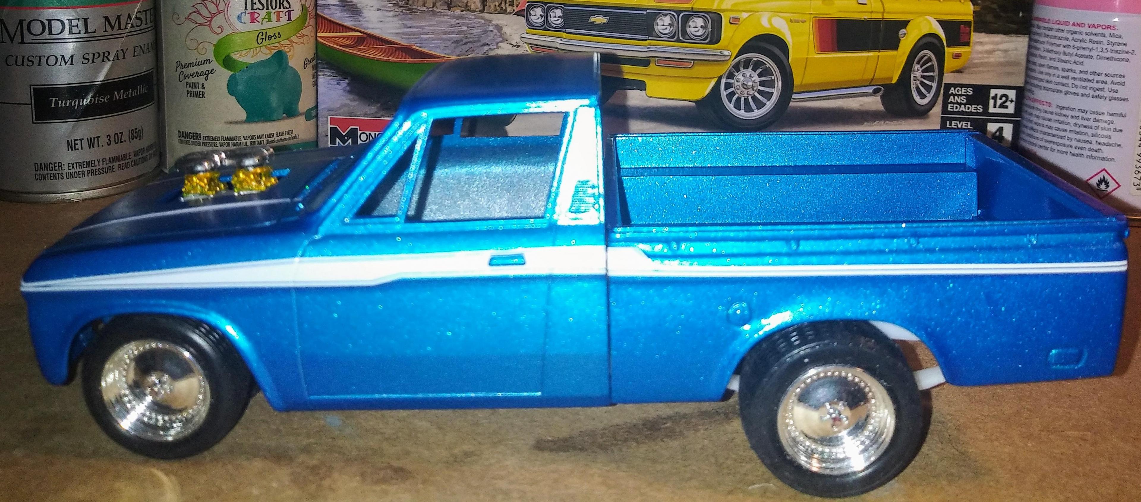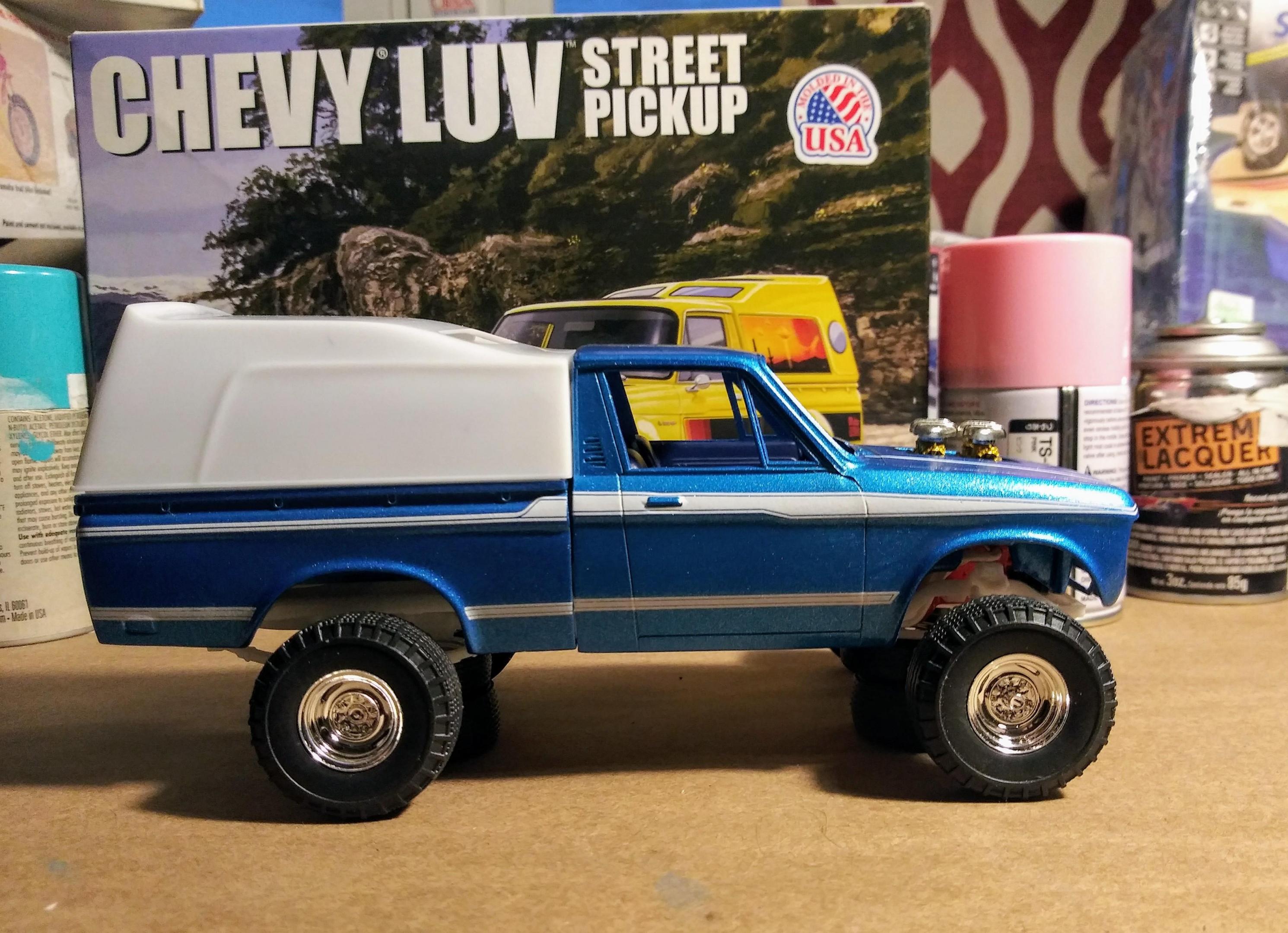 Thanks, I like these wheels too... These are from the Monogram 87 Turbo coupe. They fit perfectly in the Luv tires. The plating is really bright too. I had Polished Centerlines on my Nova back in the day.. I thought this was a retro look (late 80's) and I knew I wasn't using the Western spoke 8 lug wheels. I actually thought about tubbing the luv but it wasn't the look i was going for.