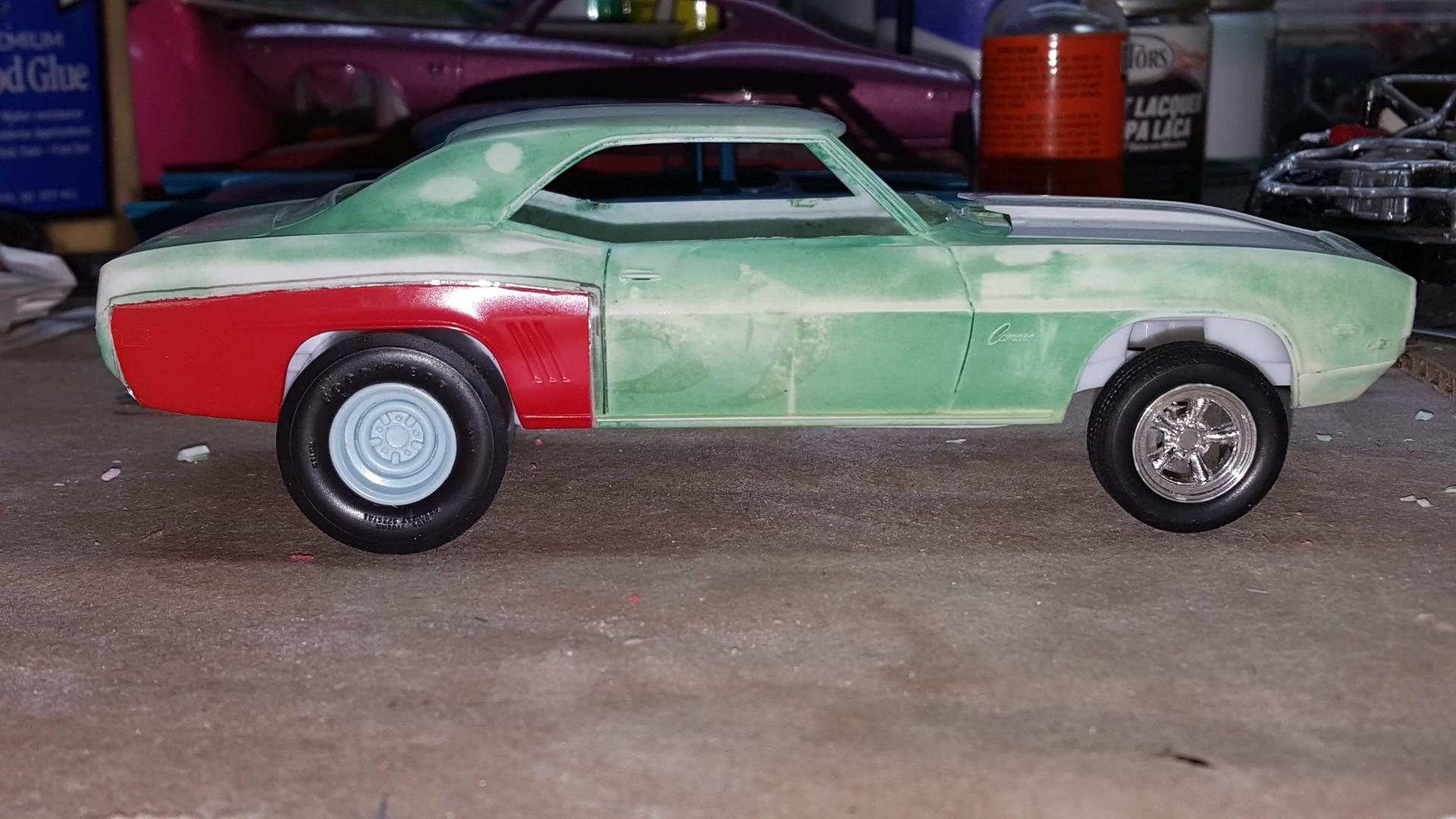 Exactly my thoughts but I was blinded by seeing the mess and knowing what it could be... everyone in our local club agrees that I should've left it alone aside from wheels and tires and a good cleaning. And the quarter panels were a serious undertaking as they were swiped from a Monogram 24th scale camaro. You must weigh the options when you find a buildup and deside what's the right decision. I just didn't take long enough to think it over... The day after I got it I had the heating and air guy at my house, he seen it sitting on my bench and asked "did you build that"!? "Ugh, No I'm better than that at modeling" I said. It kinda embarrassed me. Now he probably thinks I'm a horrible builder. I couldn't help think what the next guy would think about it. I had to make it nice... And the devil on my right shoulder said Rebuild it! lol The fact is I have 10 virgin Revell Camaros on the shelf but I wanted to fix this one, Do I have a problem? lol...