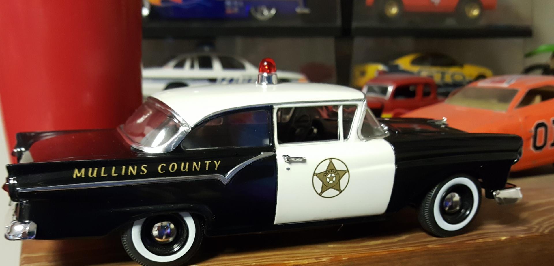 Thanks to everyone for the kind words... I really didn't think that top was gonna turn out. I have since robbed the wheels and tires from it and replaced them with some torque thrusts... Here she is at home in the case. I borrowed the tires for the 57 ford Ridge Runners patrol car. I'll be using the chrome steelies for some future project.