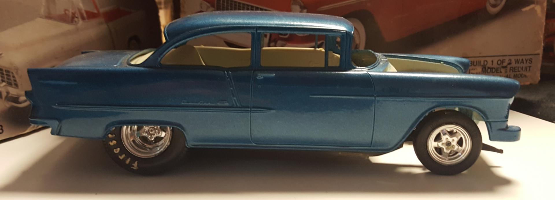 I've finished another over 25 years Dead build... The 55 Chevy is finished in the style it was started in around the early 90's. Because it was missing a hood, my original plan was to build a Gasser. Due to popular vote I choose to go with the ProStreet look. Thanks to the loyalty of the members on here I was able to get a hood (thanks David). I kept it simple because of time constraints But it was still a challange because of life and my complicated brain... hope I did the 55 Chevy proud, Thanks for you guy's support... Now It's time to get Round 3 started!I Before... and After. -