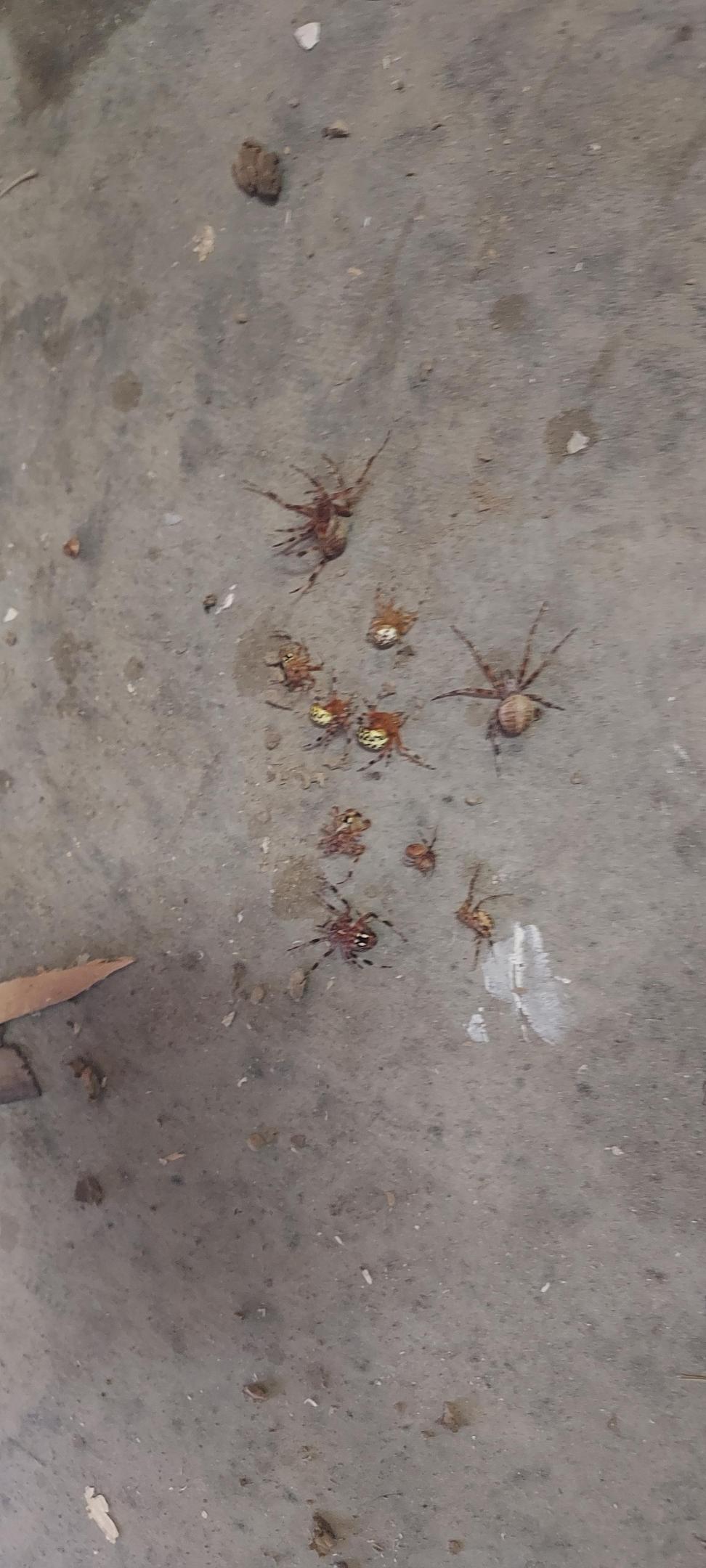 I seen a black wasp's nest forming in my garage last week so I decided to knock it down, I got it with the end of my shop broom and when it fell to the floor 1 black wasp came flying out but to my amazement a family of spiders (10 in all) the same species as what yours looks like were in the nest as well! I was in disbelief. after I took this photo for proof, I squashed em!?