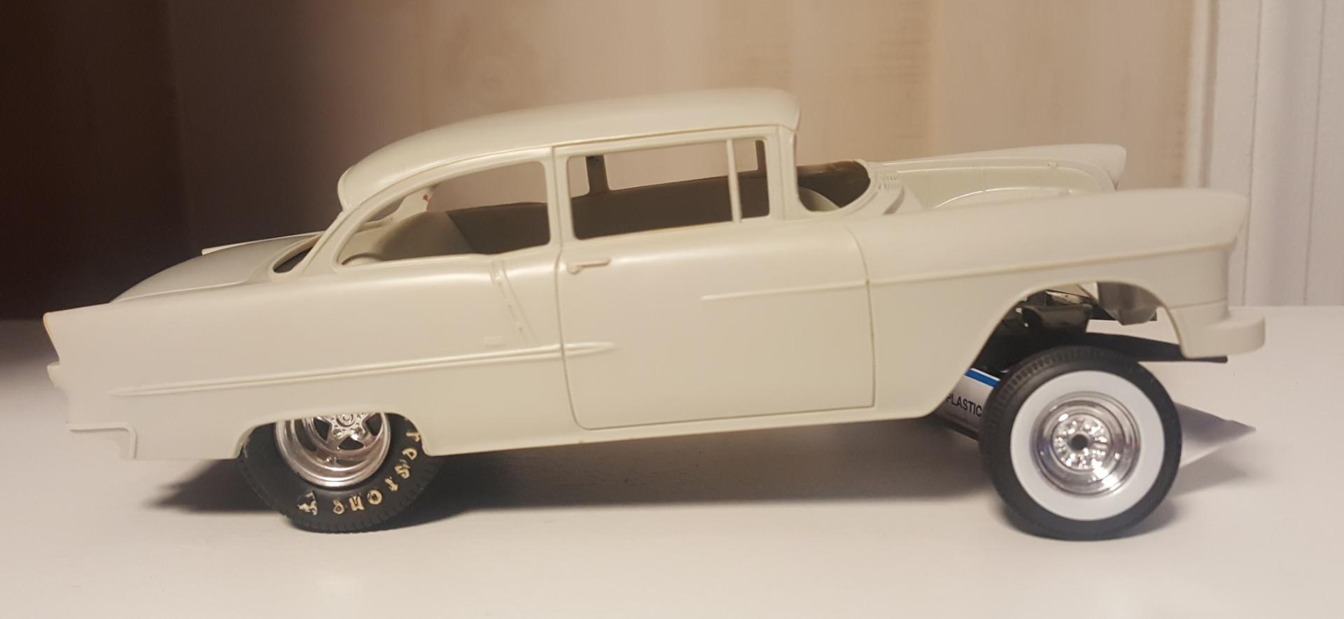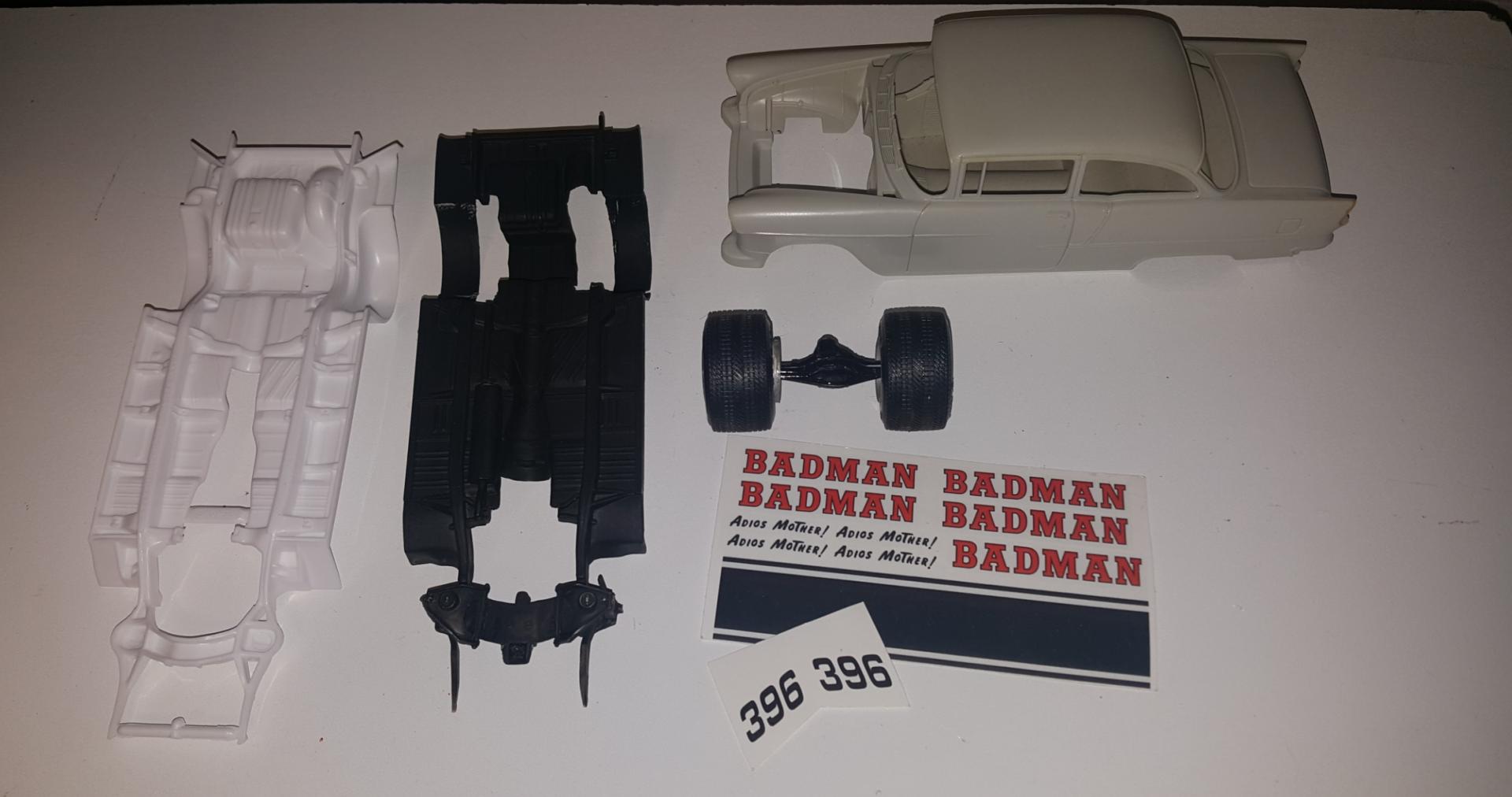 Hey thanks David! that would be cool... I was gonna say this 55 was a ProStreet sittin in the box so long that the tires melted the Inside of the body and you can see the "O N E" from the Firestone tire. All you guys have experienced this reaction when enough time comes between rubber and plastic... Rubber melts plastic lol! I may get me a resin tubbed chassis if I get a hood...Thanks agian... -
