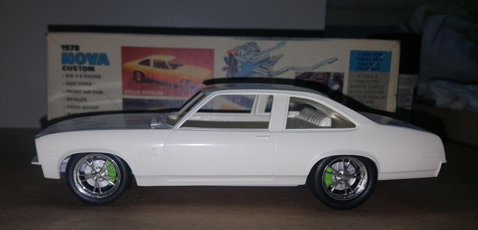 I thought I go on and start this, for discussion mostly because #1 they are my favorite cars and #2 I thought it may inspire someone else to build one. This is not the 79 but there's not much difference in the 78... I've had this 78 for 15 years and I've been scared to start it thinking I would louse it up and how often do you see these for sale and untouched? And I've bought alot of build ups to satisfy my craving to build them. The Revell 69 Nova chassis is a good replacement for the not so great one MPC supplied in the box. I've got this set up as a moderen LS pro-touring style Nova... The Squad Rod will make a nicely built example to represent the last real Nova of a Generation... we don't count the Toyota that GM put a Nova badge on lol! Thanks for Stopping by, Now go get ya a Disco Nova for the workbench lol! ??