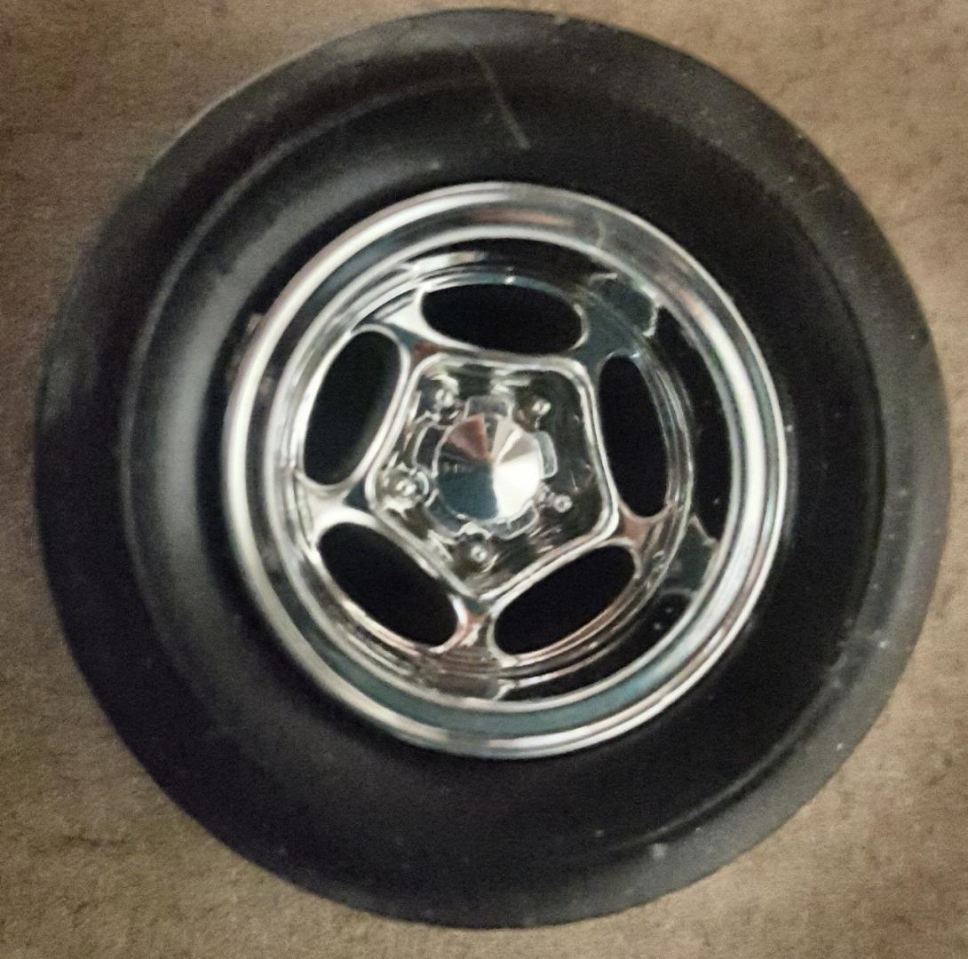6. Here are the Spyders close up... they are from the newly re-released 79 Trans Am... I like these wheels... The fronts are from the LAPD pro stock camaro. (they're in need of replating) They'll be close enough to the Centerline looking wheels that were on the Monogram kit. I'd like to see Revell make the Tel-stars for some new kit like a street version of the 68 Chevelle. Here are some comparisons to the real wheels and model wheels. I think they're close in likeness.