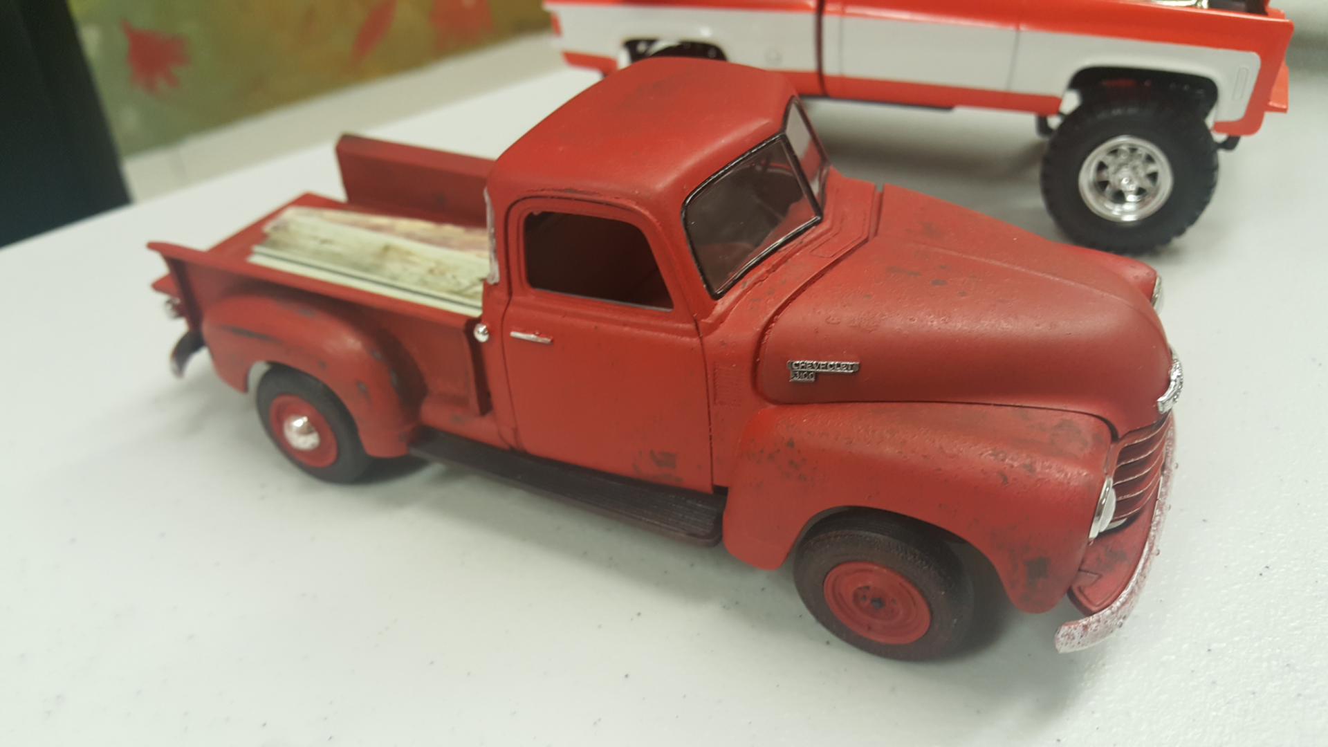 I'm building this kit currently and have already painted/weathered it... this is making me second guess and regret doing so... I may have to strip mine and go with more of a better paint job... I have a question though, didn't the decal sheet have 3 different Chevrolet colors for the tailgate? Including white... I wonder why you painted the letters instead of using the decals? I'm asking because I haven't tried them yet. Wondering if they are difficult to get in place they look seperate... just wondering? -