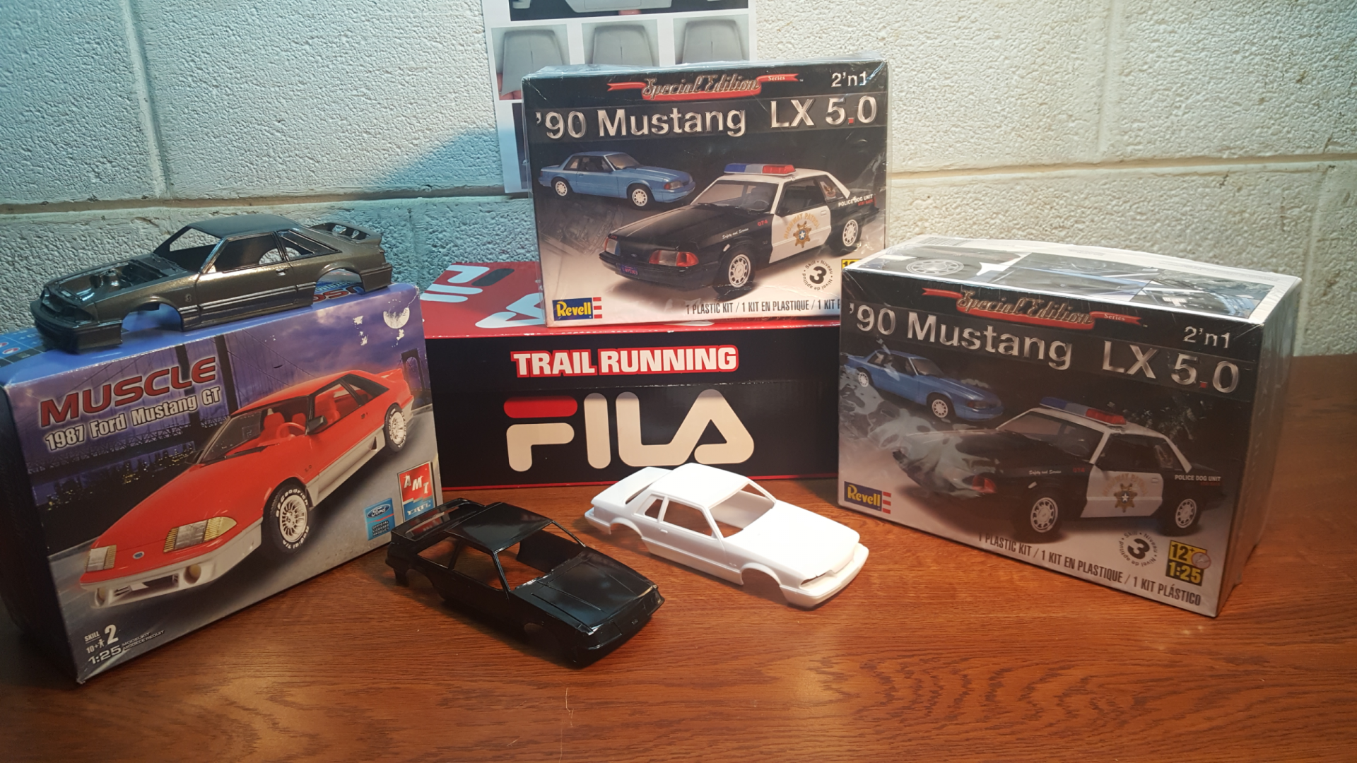 Well, here's my next Project! I've taken on a build that first seemed pretty simple... build a 90 ish Mustang GT Hatchback for my central air furnace repair guy. Easy enough... I like building 1.1 subjects and this guy digs my work so it's a win win right? It wasn't until he texted me pictures when I had a feeling that I'd bit off more than I could chew. I had to wrap my head around the car to use and then finding that kit. It took awhile to track the kit down, but Thanks to a loyal member here on the fourm I was able to secure a favorable kit. (Thanks so much, Zenon, you're a lifesaver.) Now I can keep my word and build the proper scale replica that I said I could. I can say that I am out of my lane with this kit but with a little research I've found that two kits will be needed to get accurate results. Any help/suggestions along the way will be greatly appreciated. You folks are good about lending support with tips and ideas. Thanks in advance. For now the first order of business will be swapping the front bumper/grill and rear bumper and taillight assembly. I think I'll build the notchback (Revell cop car) with GT equipment (phantom?) So I won't ruin a body. It will be fun to build a rough and tough LX with GT parts from the Local junkyard. Kind of a Redneck budget GT wanna-be. A Daily-driver, kind of a Big dreams with empty pockets owner. We all know guys like that. So it will be weathered with multi colored panels, fading, and any thing that says I care but my lack of money and resources are limited. Speaking of which, do I build the hatchback with weathering (as pictured) or build it as the restored Dream car he wishes it would be? I guess my decision will be made the further I get along with the build. So here goes! Check back for updates. Thanks for looking!